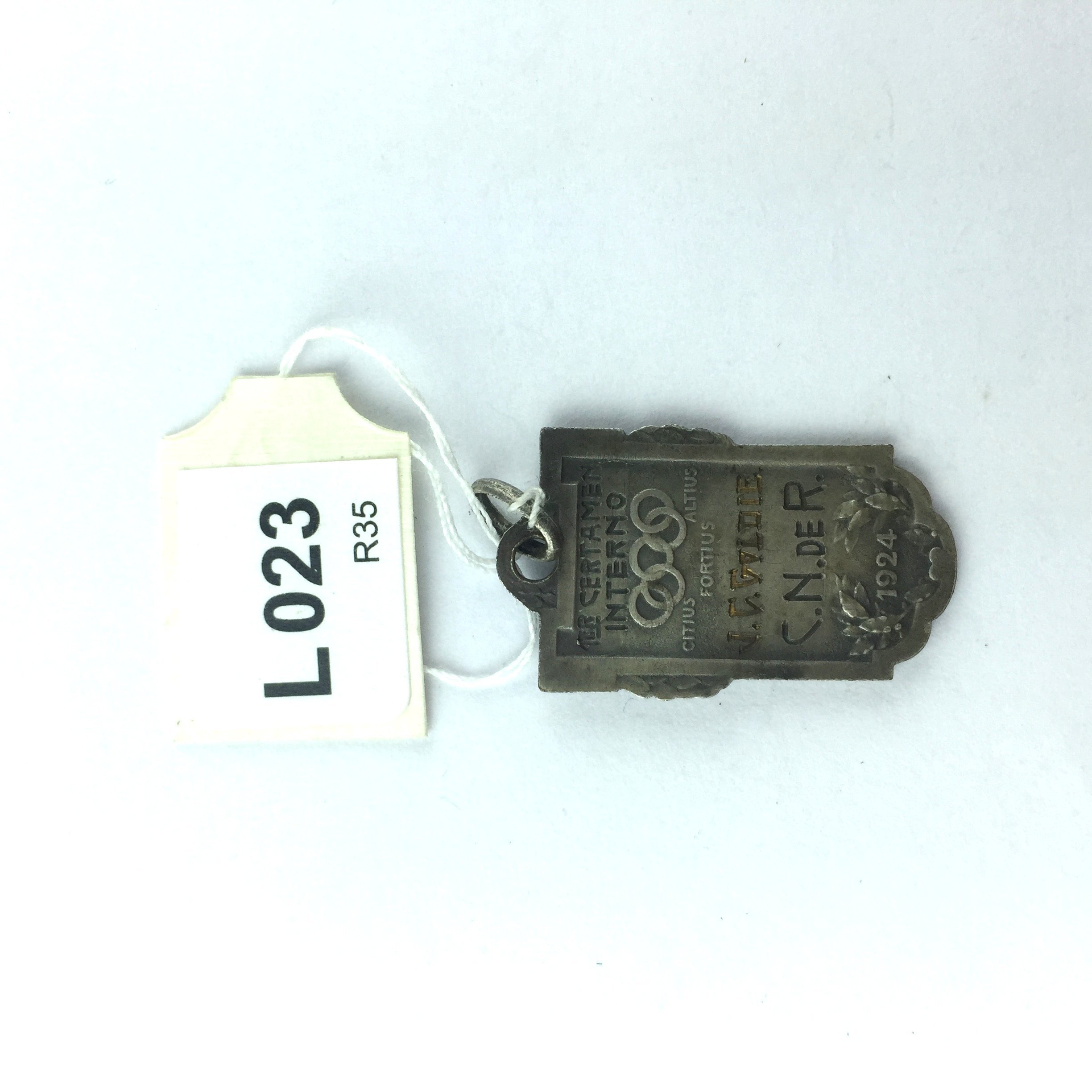 Medalla olímpica en plata «Le Salut», 1924. Diseñada por Becker.