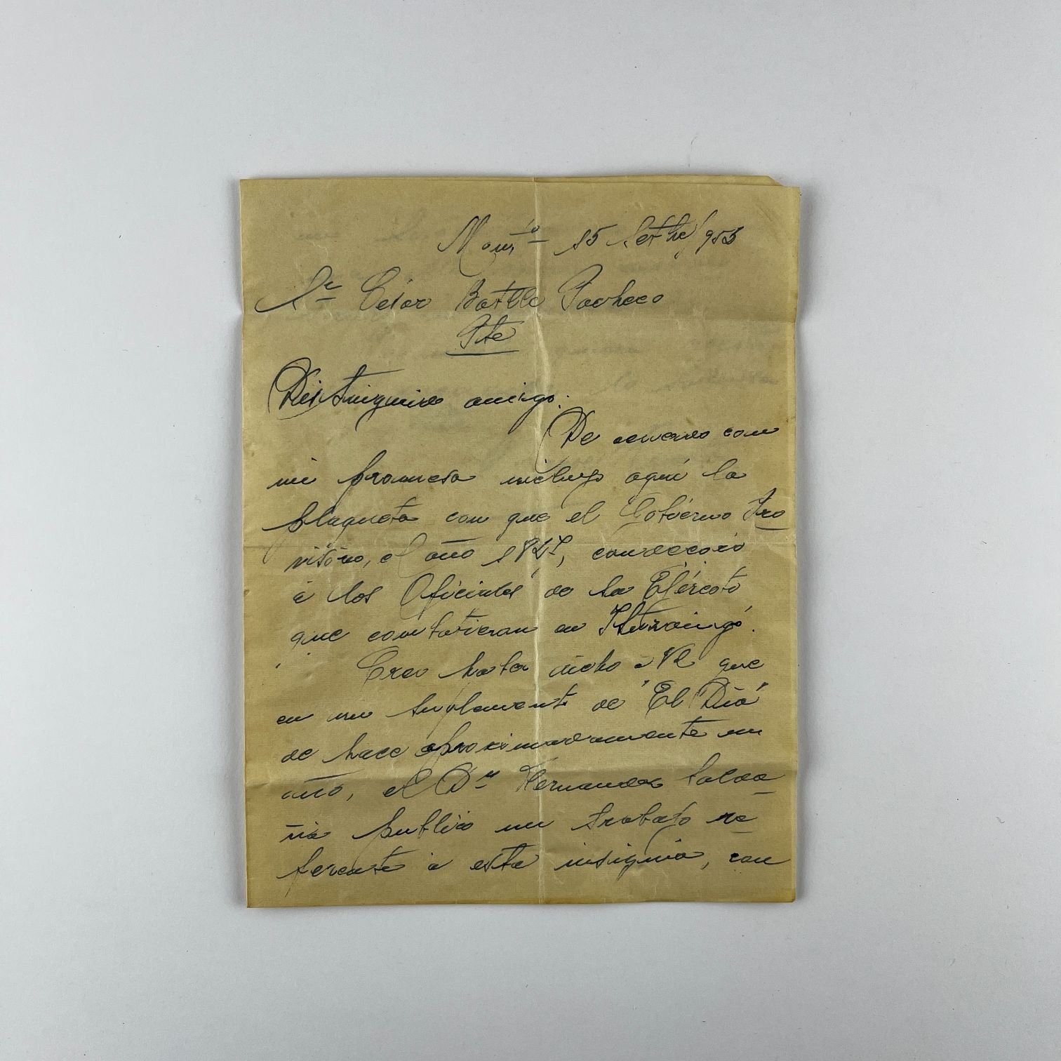 Medalla uruguaya en plata. “La patria a los vencedores de Ituzaingó.” Acompañada por carta manuscrita fechada en Montevideo el 15 de septiembre de 1953 y dirigida por el futbolista Carlos Carve Urioste a su «distinguido amigo» César Batlle Pacheco, a quien Carve Urioste hace entrega de la medalla «de acuerdo con mi promesa». 1 folio.