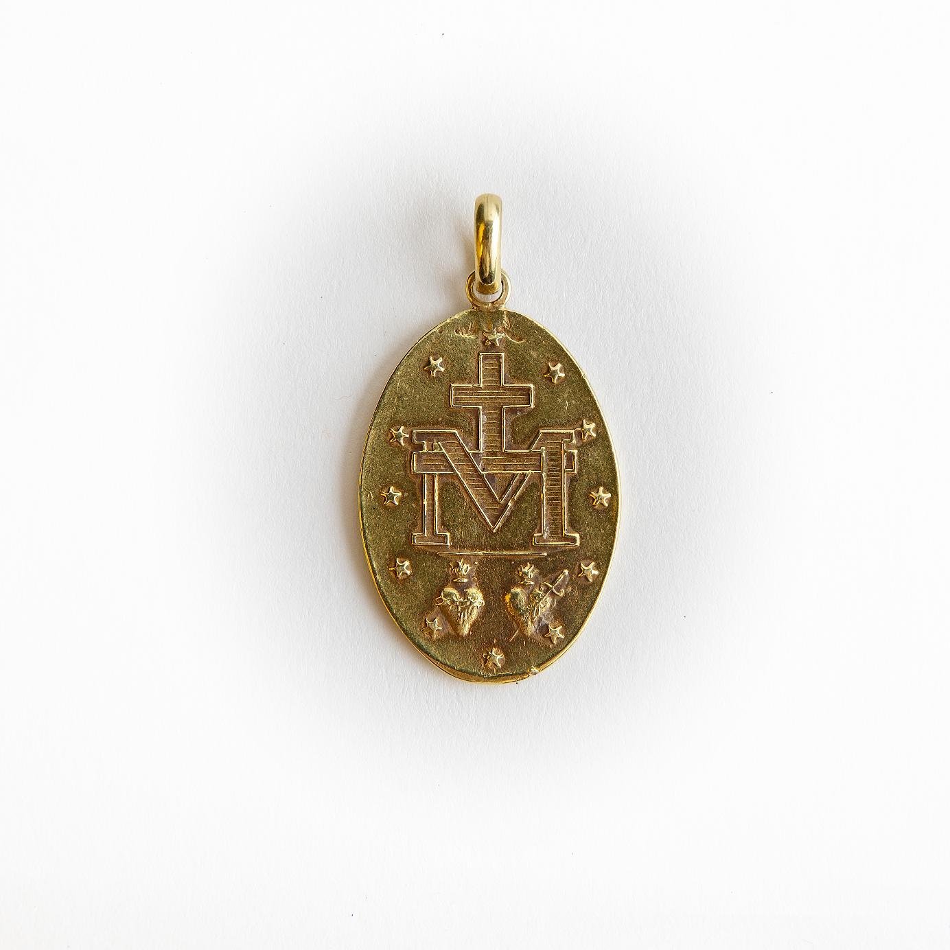 Medalla oval en oro 18 K amarillo. “Medalla Milagrosa.” 45 x 26.5 mm. Peso 12 gr.