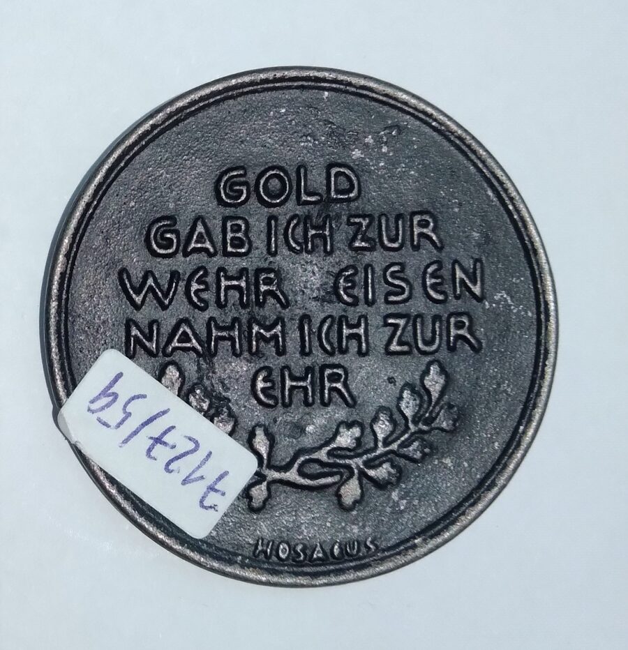 Medalla militar alemana época Primera Guerra Mundial. «In Eiserner Zeit 1916. Gold Gabich Zur Wehr Eisen Nahmich zur Ehr.»
