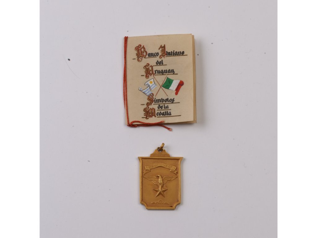 Medalla en oro 18 K amarillo realizada por Tammaro y otorgada por el Banco Italiano del Uruguay «A los 30 años de labor». Peso 24.7 gr.