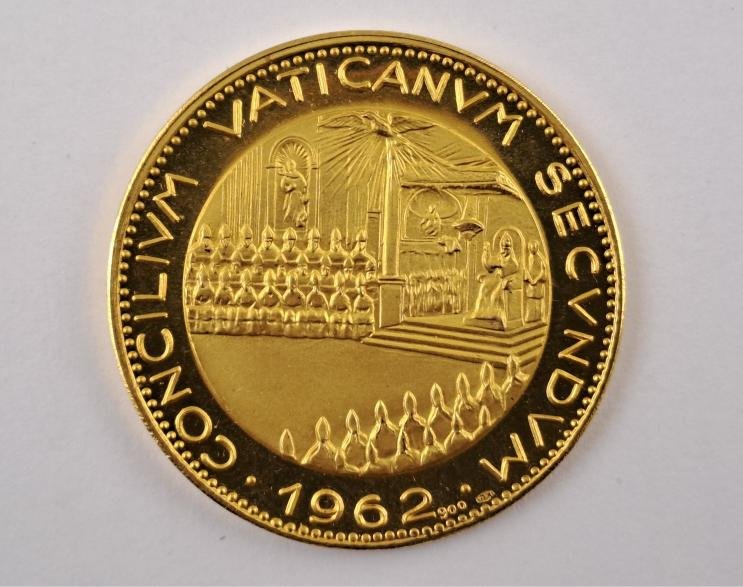 Medalla vaticana en oro 900, Juan XXIII (1958-1963) con inscripción “Concilium Vaticanum Secundum 1962”. Peso 22 gr aprox.