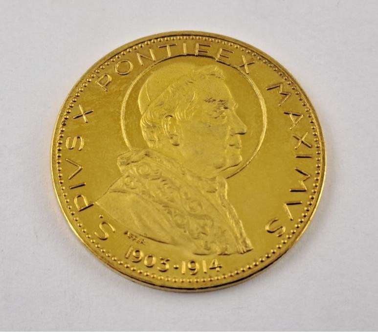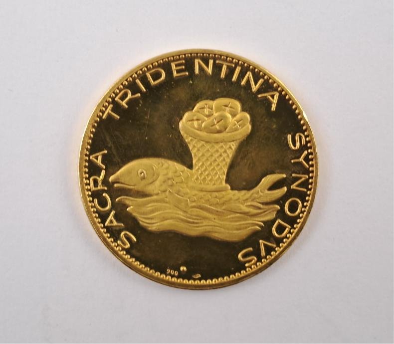 Medalla vaticana en oro 900, Pío X (1903-1914) con inscripción “Sacra Tridentina Synodus”. Peso 22 gr aprox.
