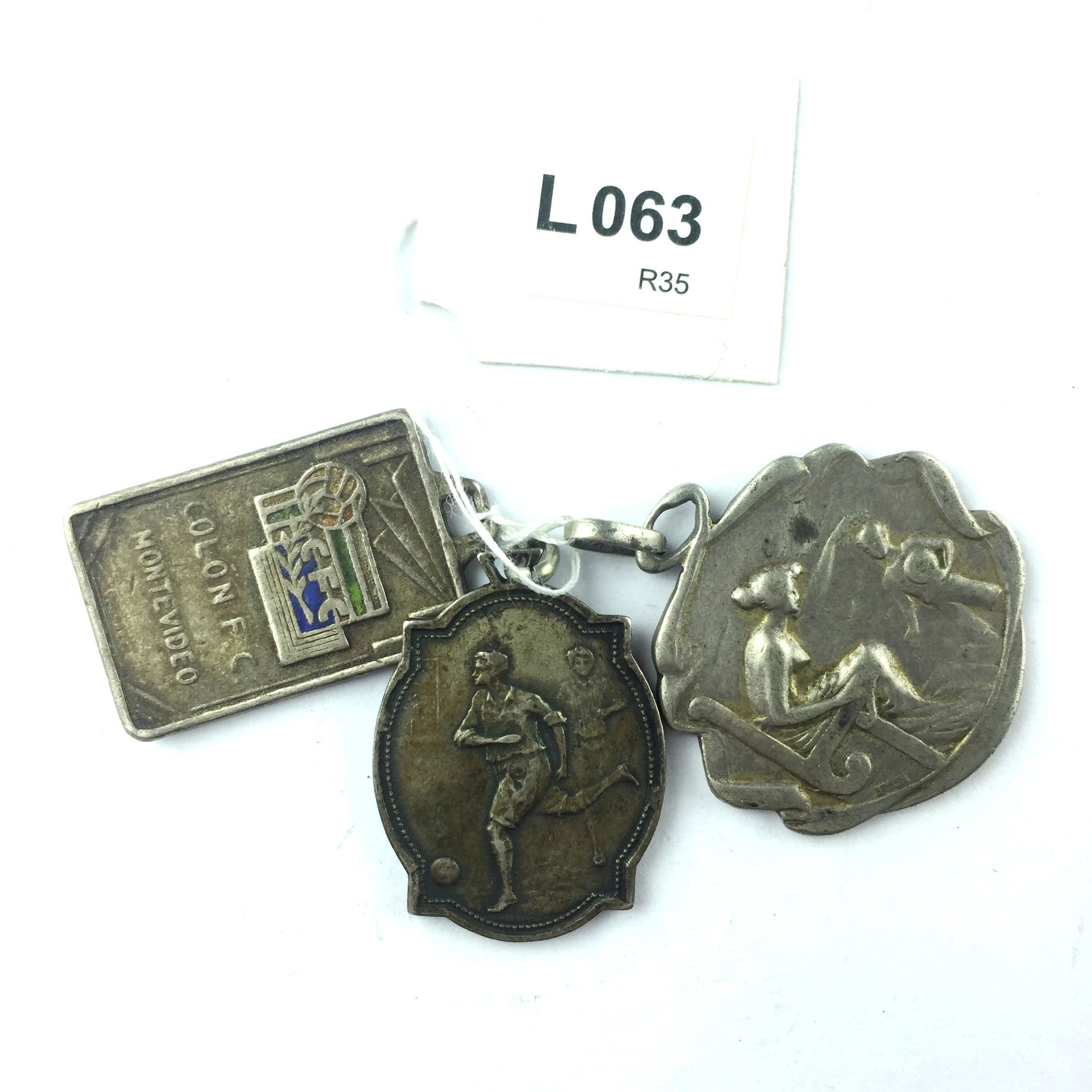 3 antiguas medallas en plata, una de la Liga Uruguaya, año 1932, otra del Cincuentenario de Colón Football Club y otra del Campeonato de Honor, año 1912.