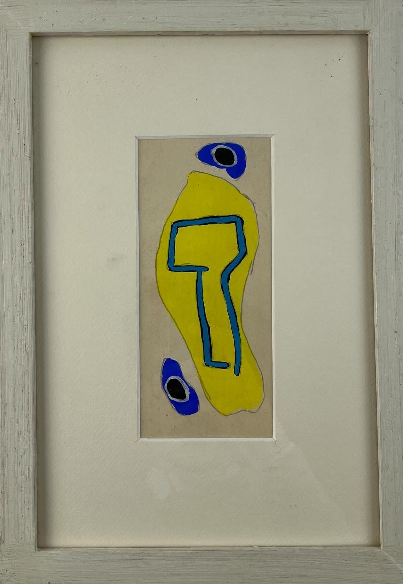 MIGUEL ÁNGEL PAREJA (Escuela uruguaya, 1908-1984) Lápiz y acuarela sobre papel «Formas en amarillo y azul» 17 x 8 cm