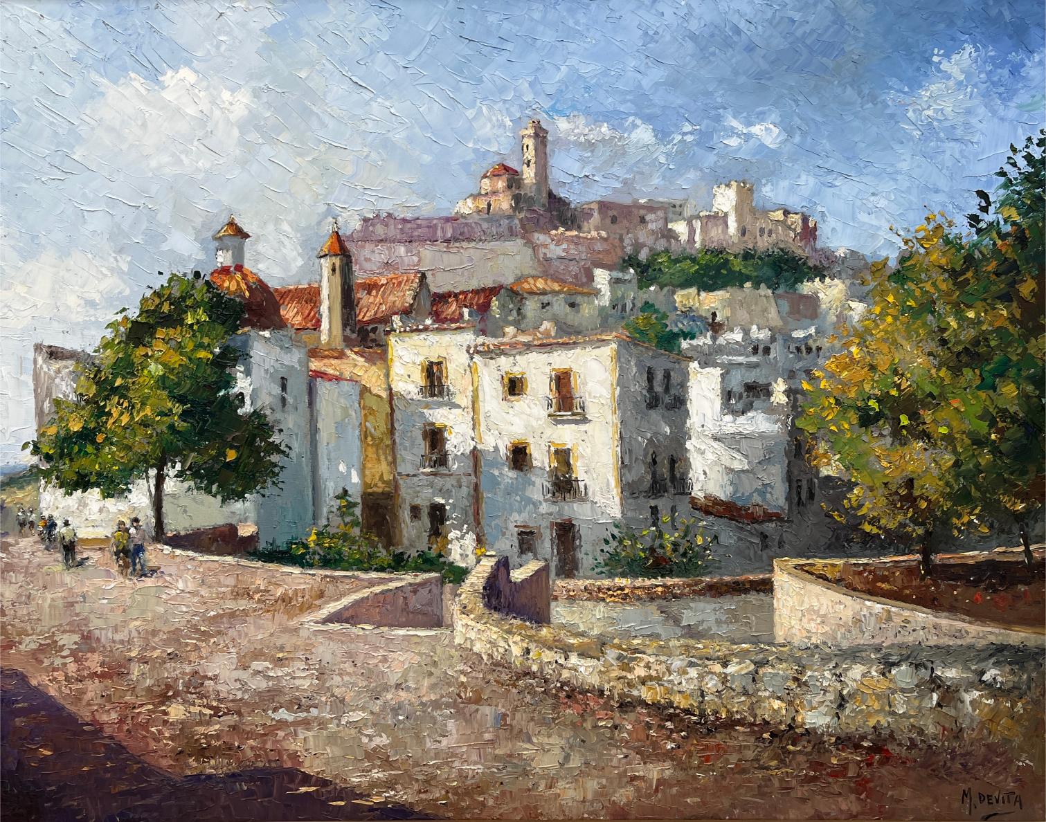 MIGUEL DE VITA (Escuela uruguaya, 1923-2004) Óleo sobre tela «Ibiza» Firmado abajo a la derecha Al dorso titulado y fechado «00» por el artista 73 x 92 cm