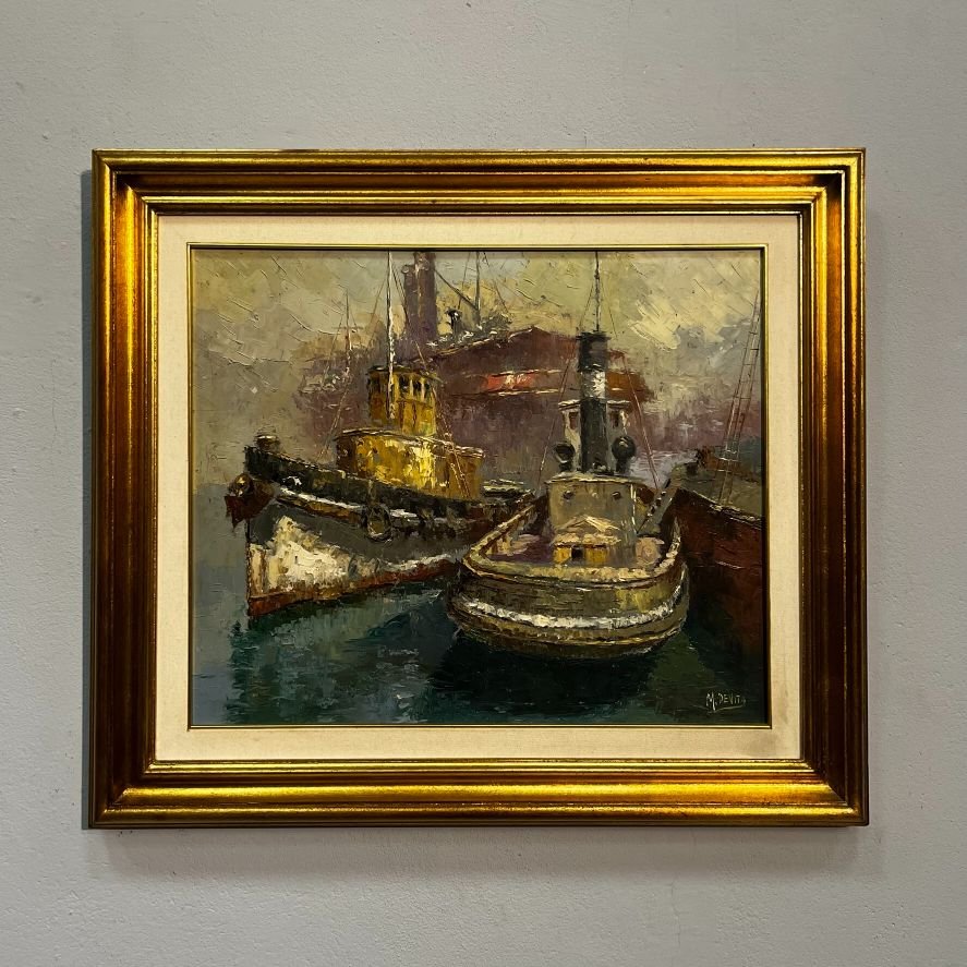 MIGUEL DE VITA (Escuela uruguaya, 1923-2004) “Remolcadores” Óleo sobre tela Firmado abajo a la derecha 49 x 58 cm