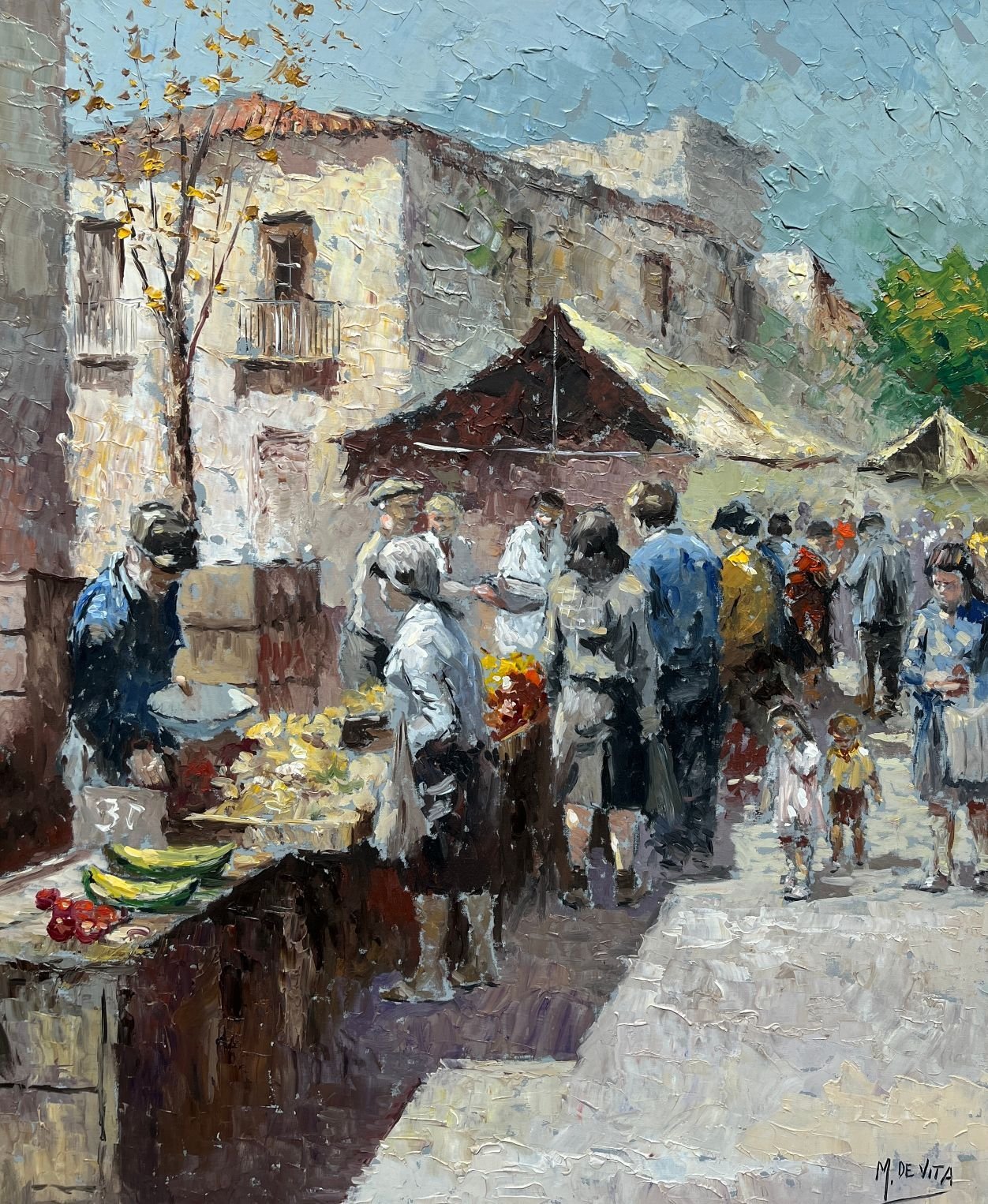 MIGUEL DE VITA (1923-2004) «Feria» Óleo sobre tela Firmado abajo a la derecha 74 x 60 cm