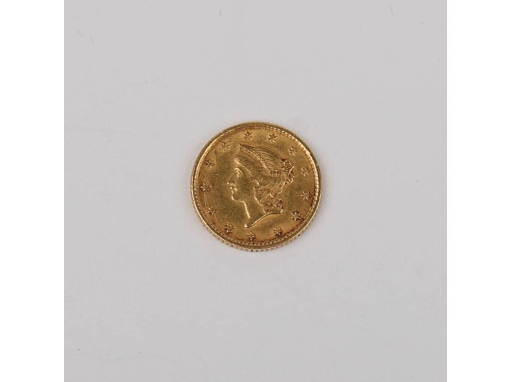 Moneda estadounidense en oro denominación 1 dólar del año 1854. Peso 1.68 gr.