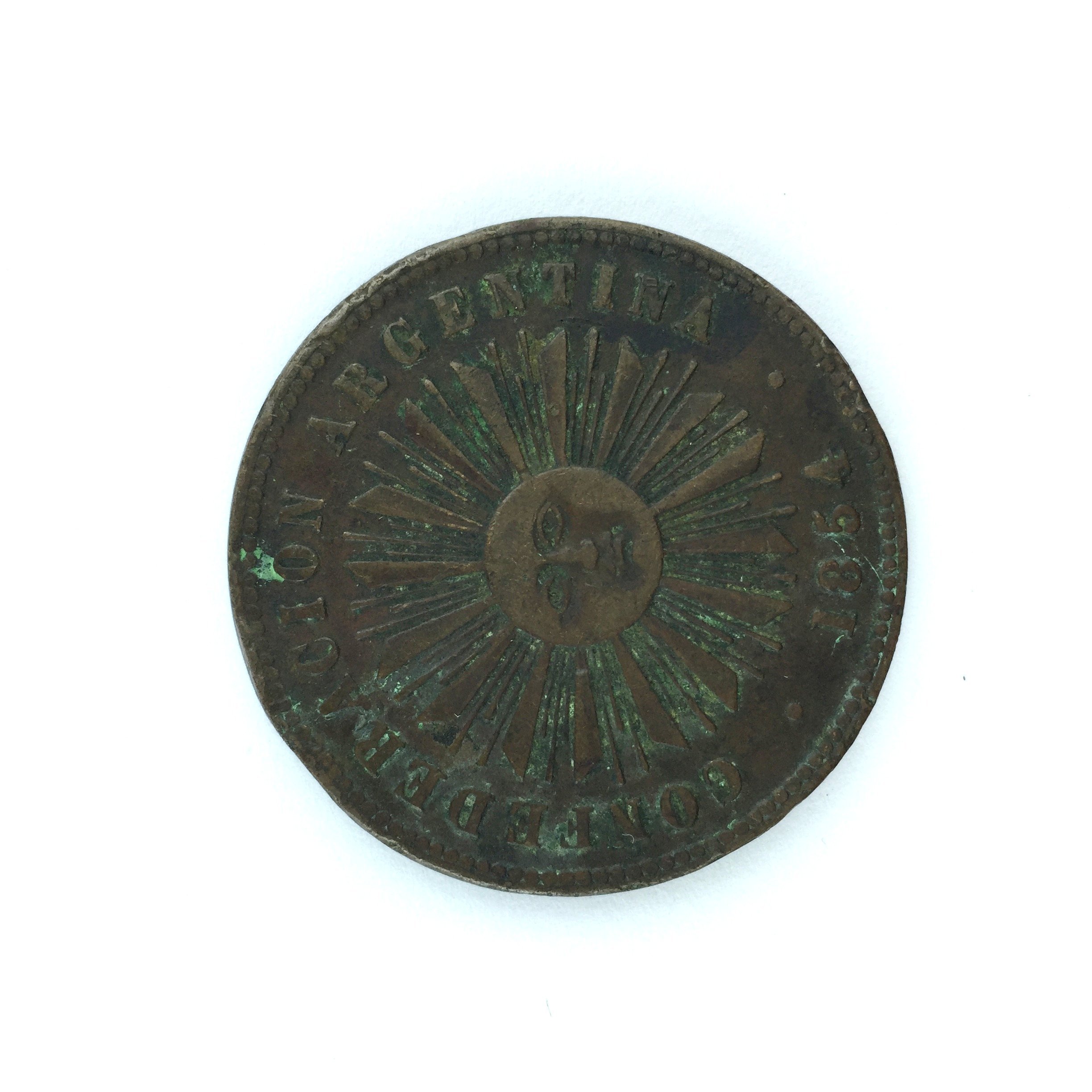 Moneda en cobre de la Confederación Argentina año 1854 denominación 4 centavos del Banco del Tesoro Nacional.