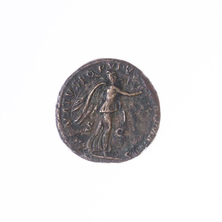 Moneda romana en bronce, período 114-117 D.C., época emperador Trajano. Diámetro 26 mm. Peso 10,07 gr.