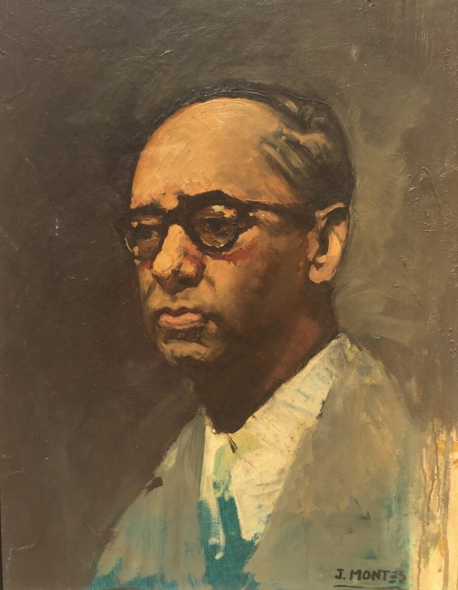 MONTES, José Luis (escuela uruguaya, 1929-2001). Óleo sobre tela. «Retrato de Juan Carlos Onetti.» Firmado abajo a la derecha. 57.5 x 44 cm.