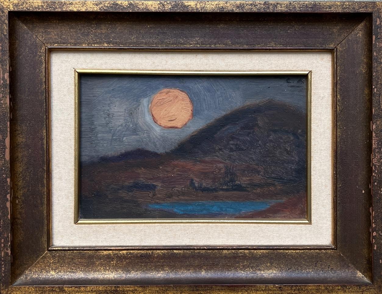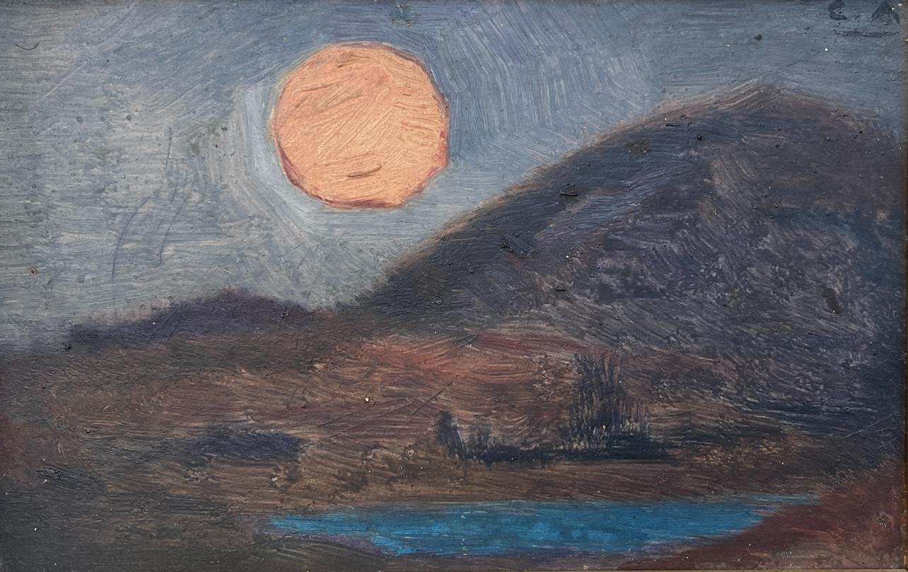 CARMELO DE ARZADUN (Escuela uruguaya, 1888-1968) Óleo sobre fibra «Atardecer» Firmado con iniciales «CA» arriba a la derecha 14,5 x 23 cm