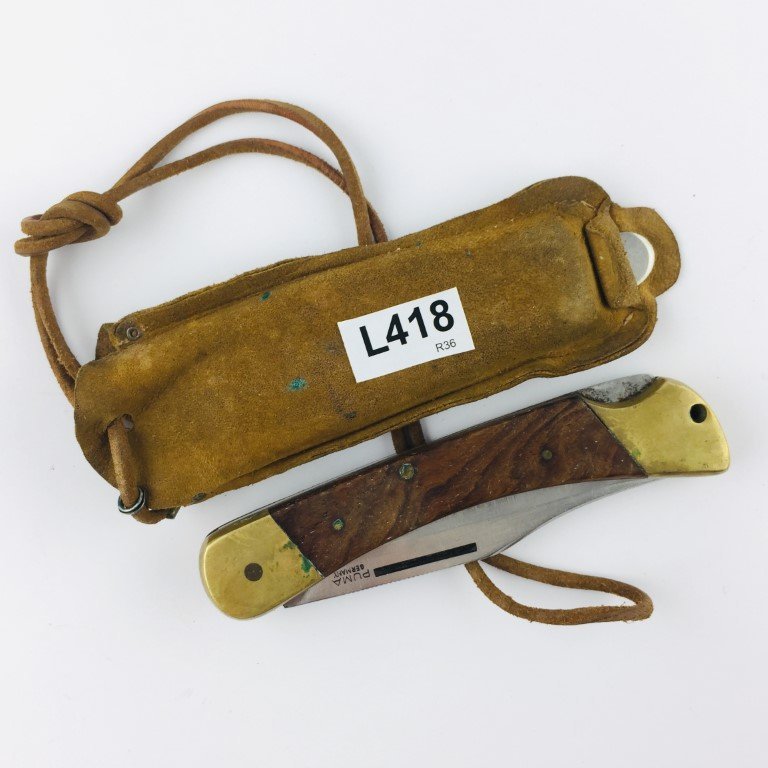 Navaja alemana marca Puma con cachas en bronce y madera.