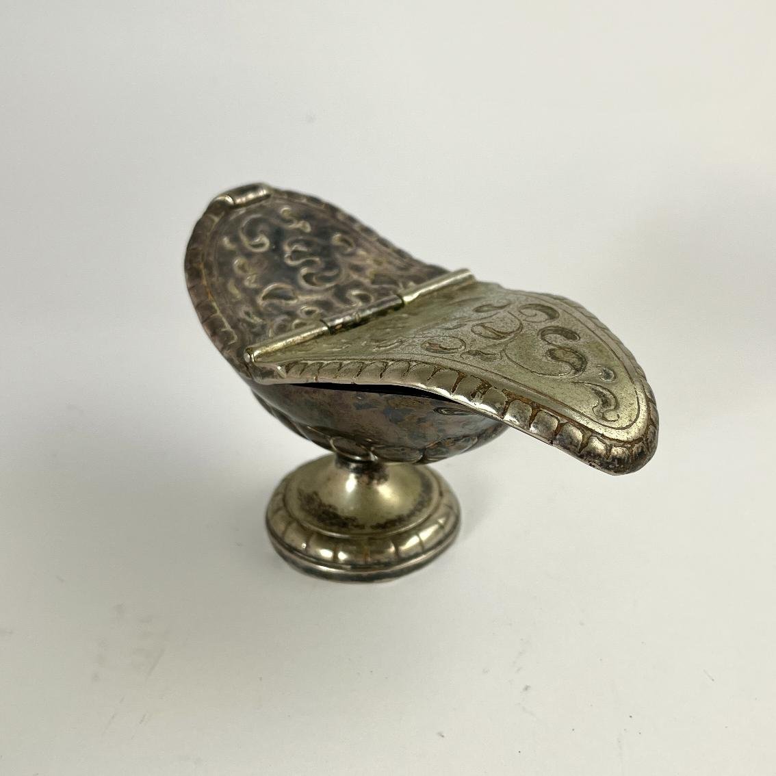 Naveta en metal plateado decorada «arabescos». 8 x 12 x 7 cm.