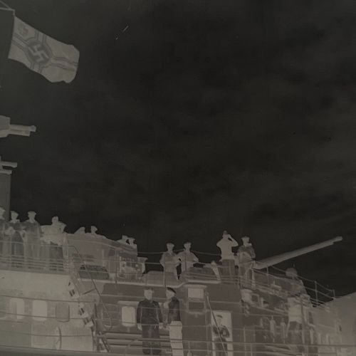 Conjunto de doce negativos fotográficos inéditos relativos al acorazado alemán Admiral Graf Spee, incluyendo imágenes de su hundimiento y la tripulación. Formato 120 mm.