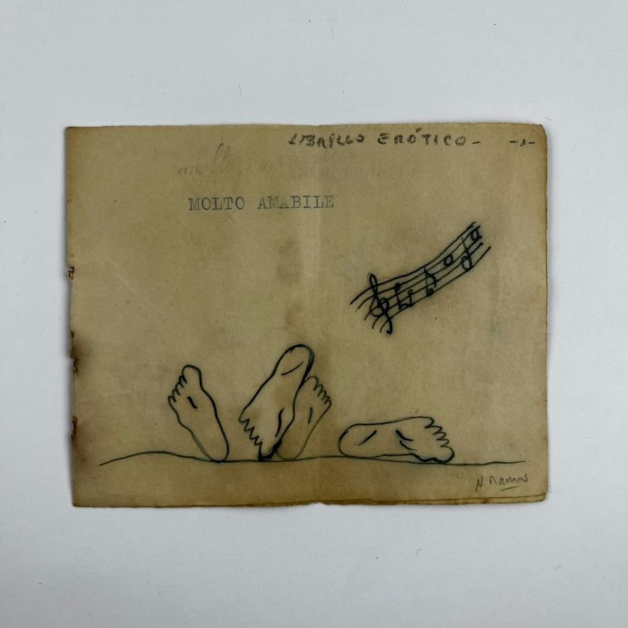 Acompañado por dibujo a tinta sobre un pliego de papel, titulado «Dibujo erótico» por el artista y firmado abajo a la derecha