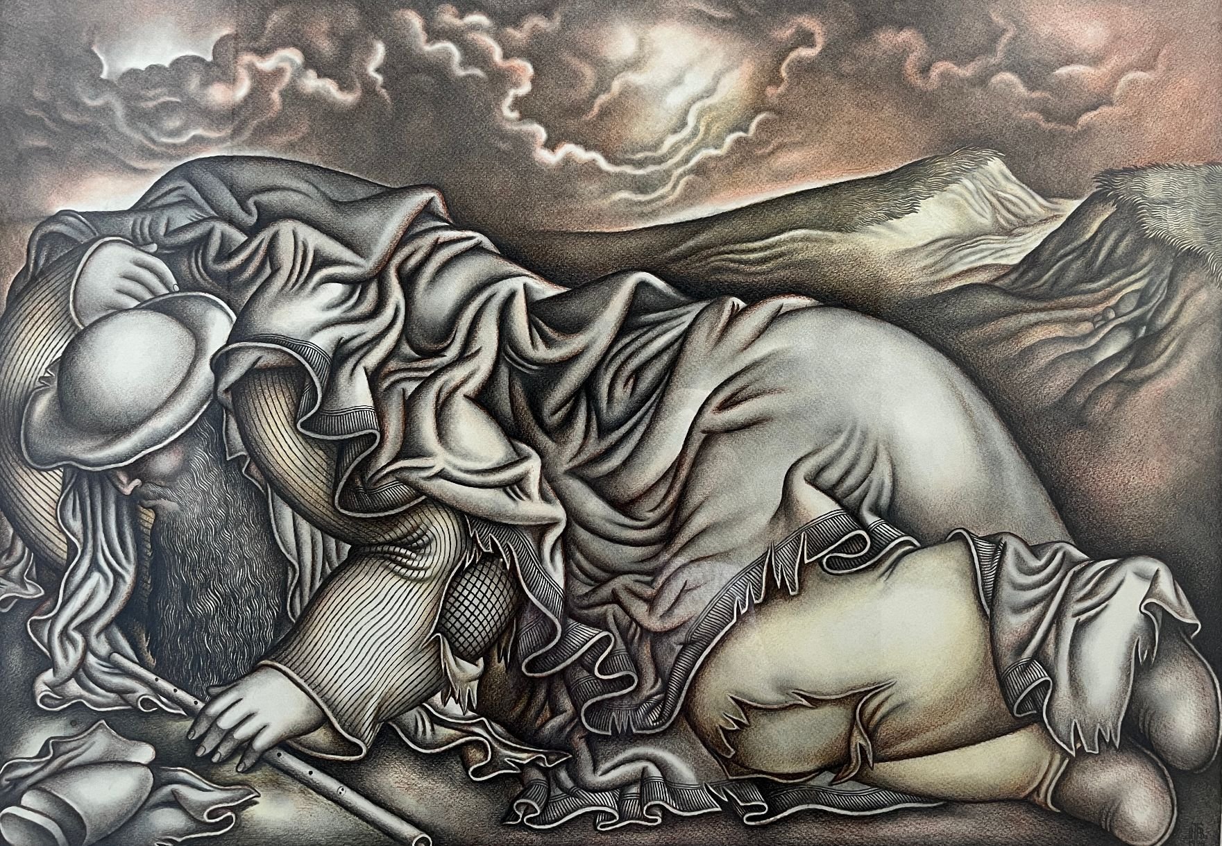 NELSON ROMERO (1951-2012) «Descanso» Tinta y lápiz color sobre papel Firmado con iniciales y fechado «1998» abajo a la derecha 48 x 69 cm