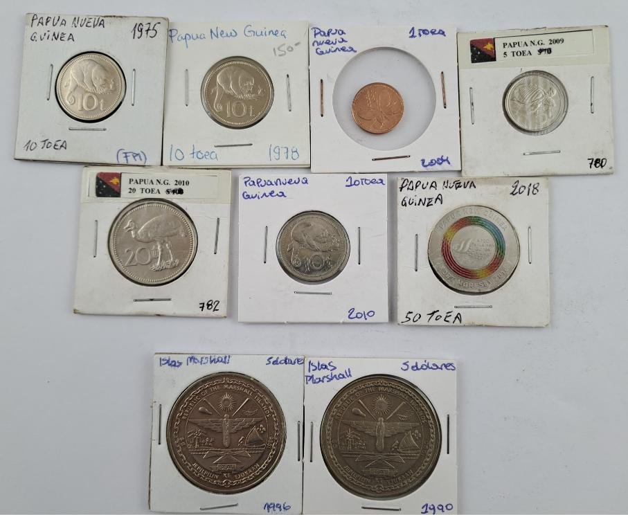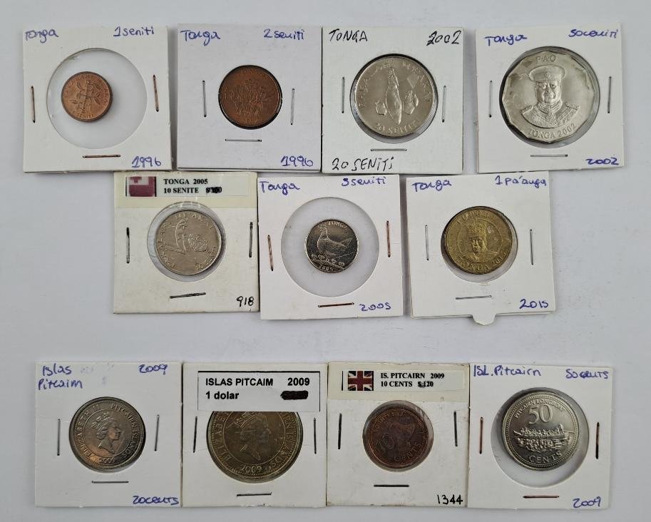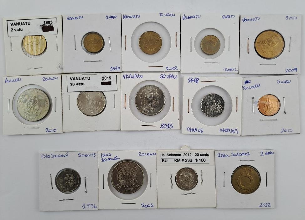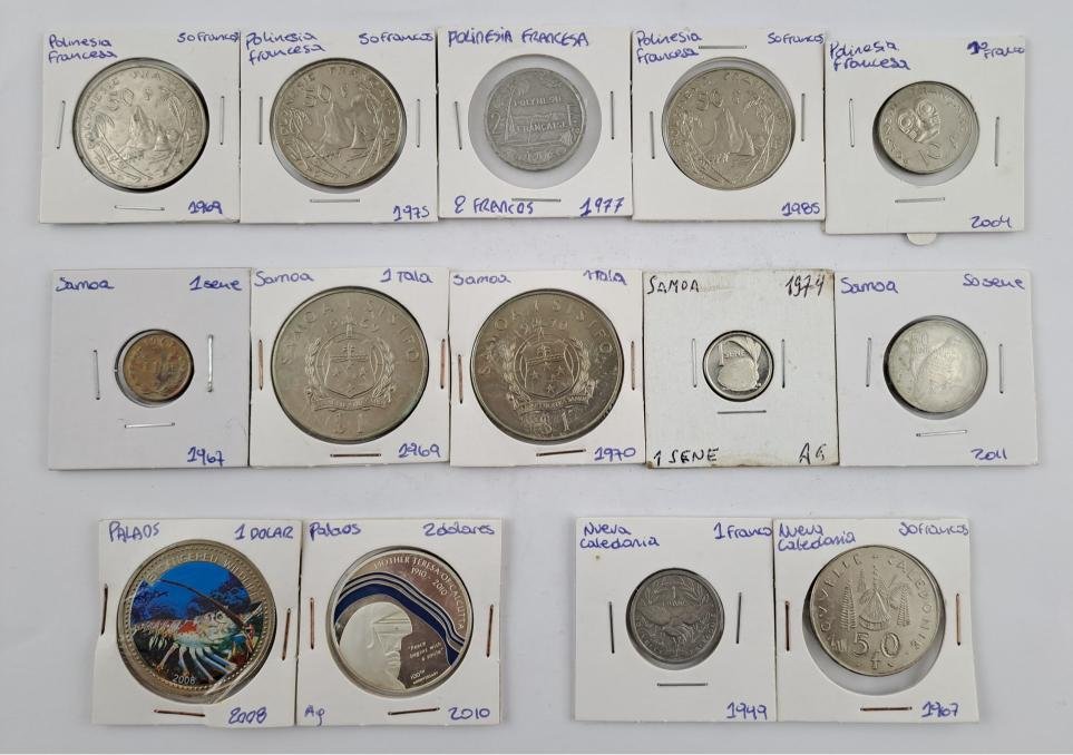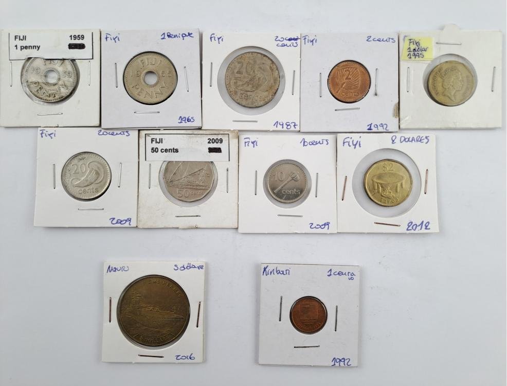 Cincuenta y nueve monedas de Oceanía: Fiyi (9, libra fiyiana y dolar fiyiano), Islas Marshall (2, conmemorativas), Islas Pitcairn (4, colonia británica), Islas Salomón (4), Kiribati (1), Nauru (1, ensayo), Nueva Caledonia (2, Territorio Francés de Ultramar), Palau (2, de colección, una de plata), Papua Nueva Guinea (7, una de colección), Polinesia Francesa (5, Territorio Francés de Ultramar), Samoa (5, una de plata, dos conmemorativas), Tonga (7), Vanuatu (10).