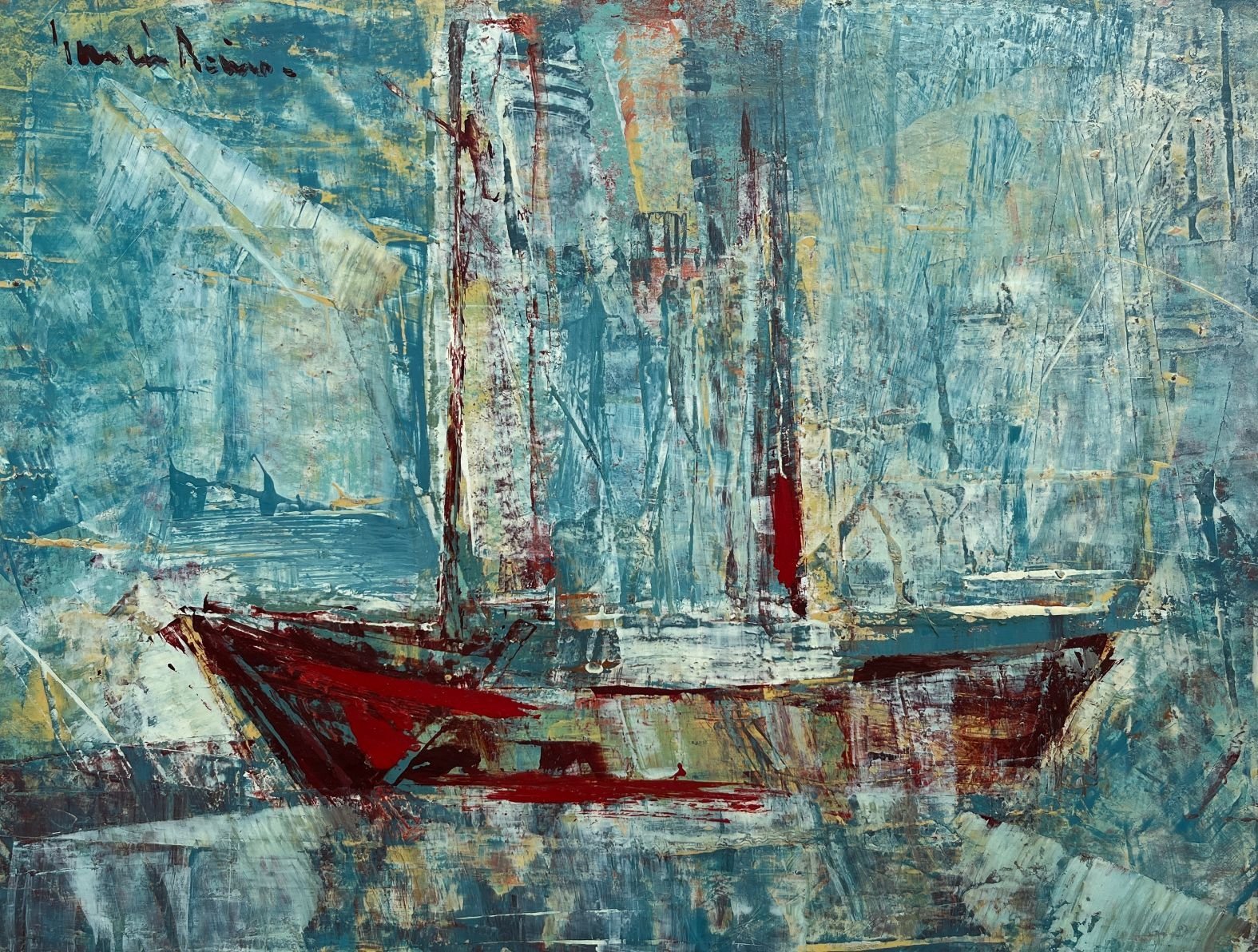 ÓSCAR GARCÍA REINO (1910-1993) «Barco» Acrílico sobre fibra Firmado arriba a la izquierda 23 x 30 cm
