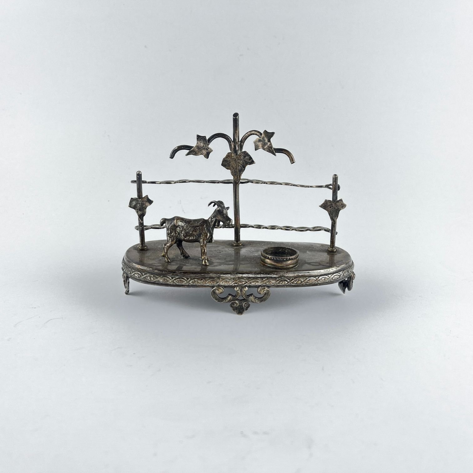 Palitero en plata esculturado «cabra en el corral». 10 x 13 x 6 cm.