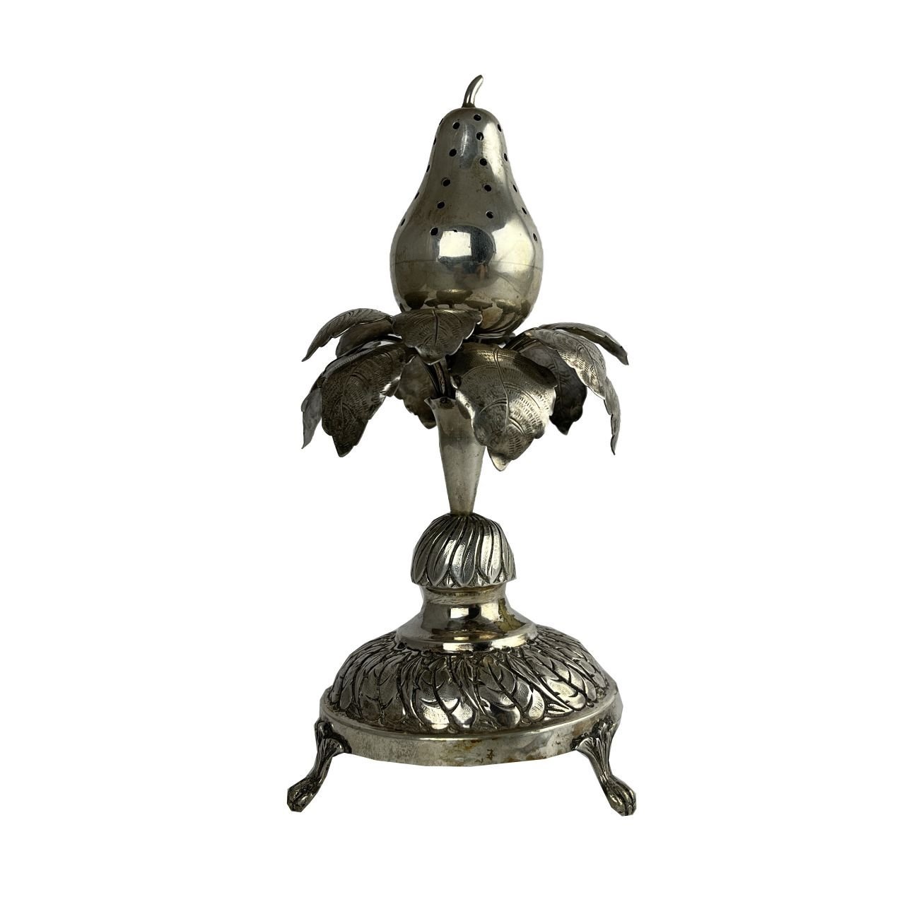 Palitero portugués en plata esculturada «hojas y fruto», con punzón de la ciudad de Porto. Base redonda. Alto 19 cm.