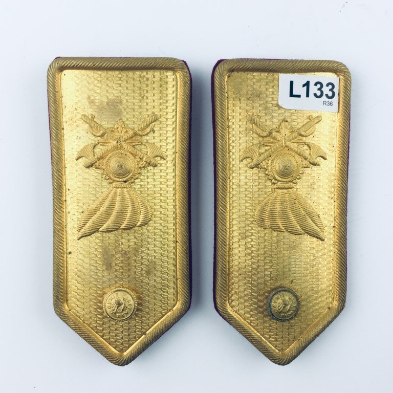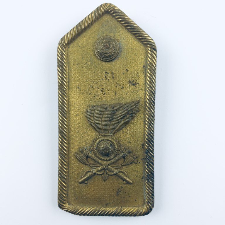 Par de charreteras italianas en metal dorado, con botón con inscripción «Militare Genio».