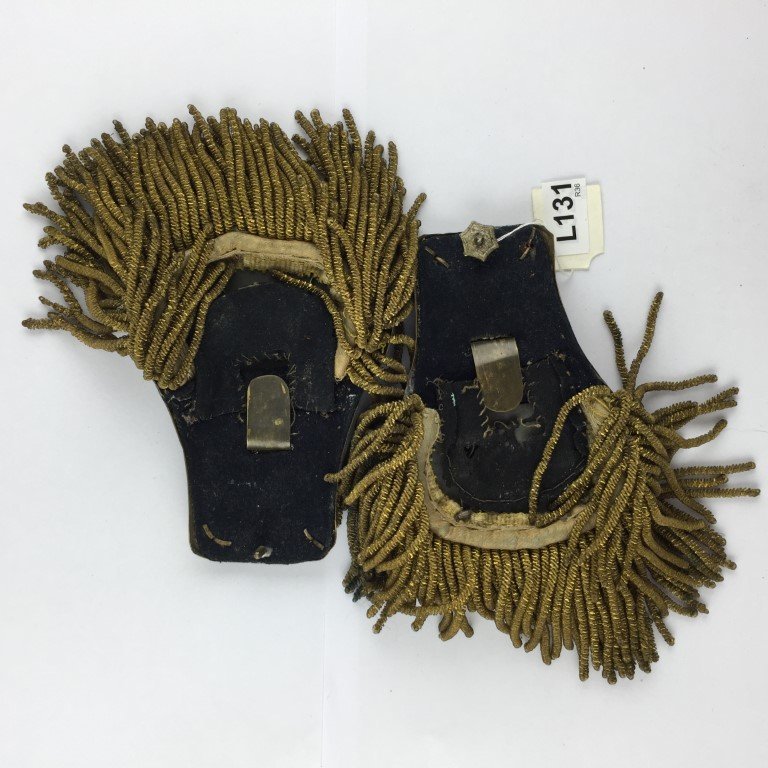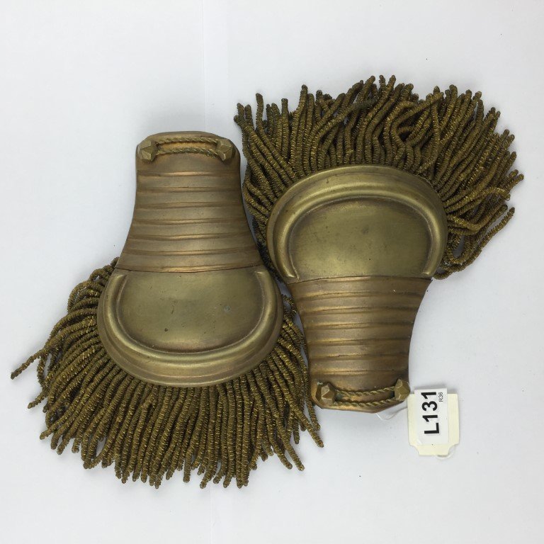 Par de charreteras italianas, en bronce, con canelones en hilo de oro.