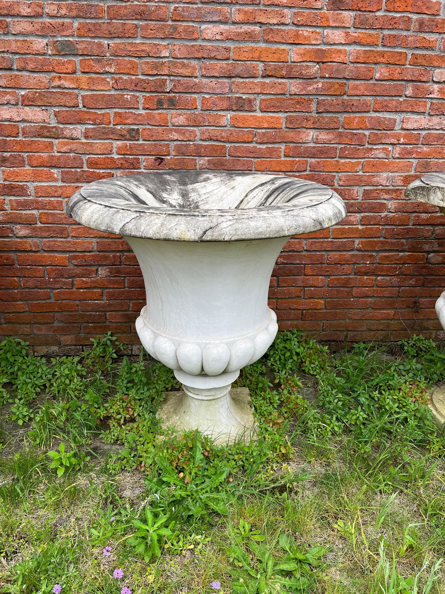 Par de copones en mármol blanco con friso lobulado. Alto 100 cm. Diámetro 88 cm.