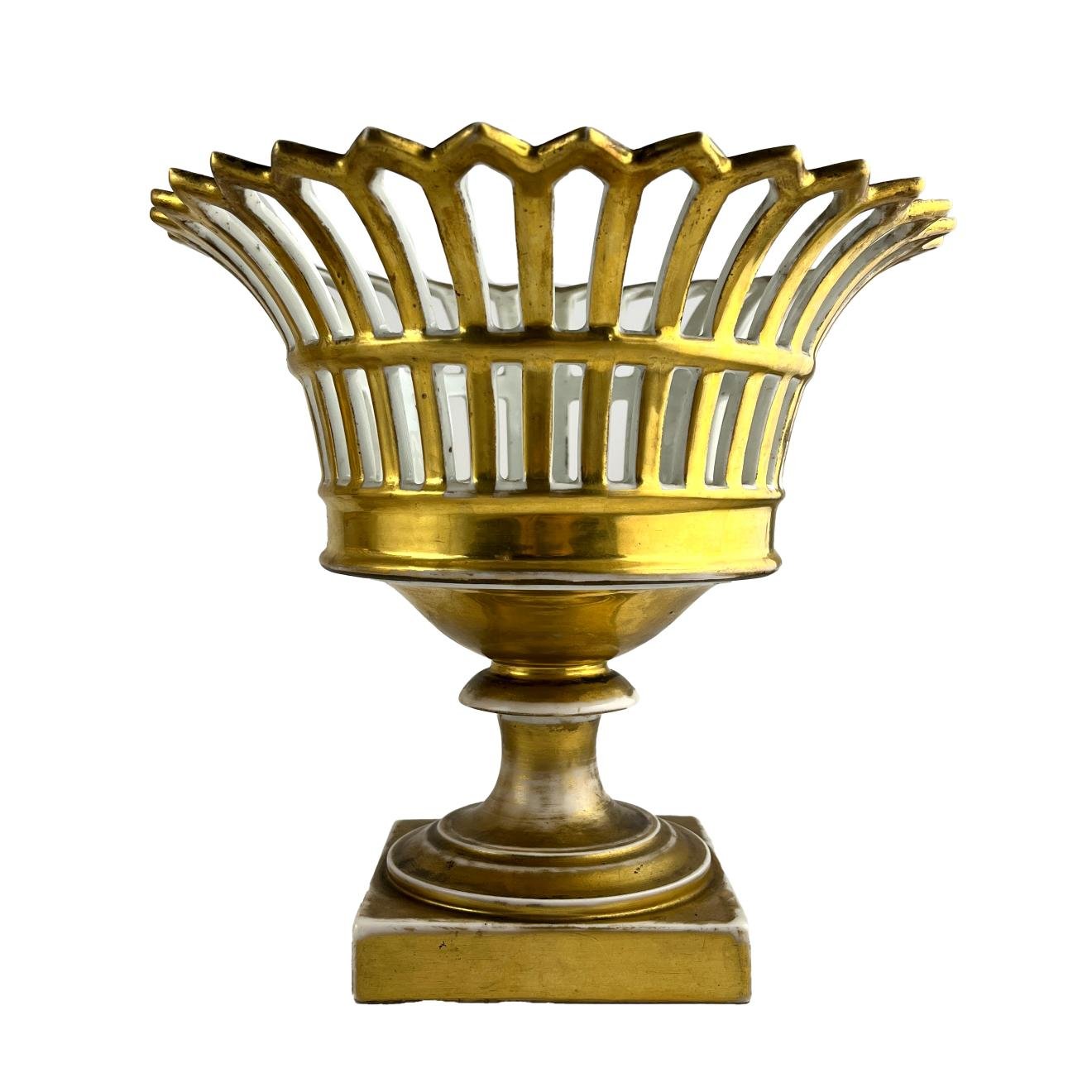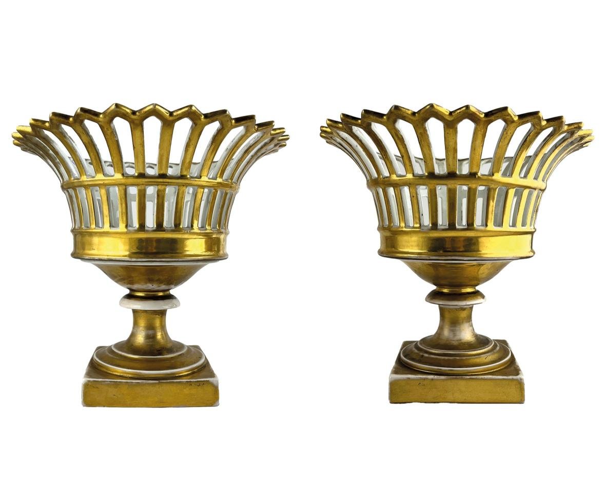 Par de fruteras en porcelana Vieux Paris. Alto 22 cm.