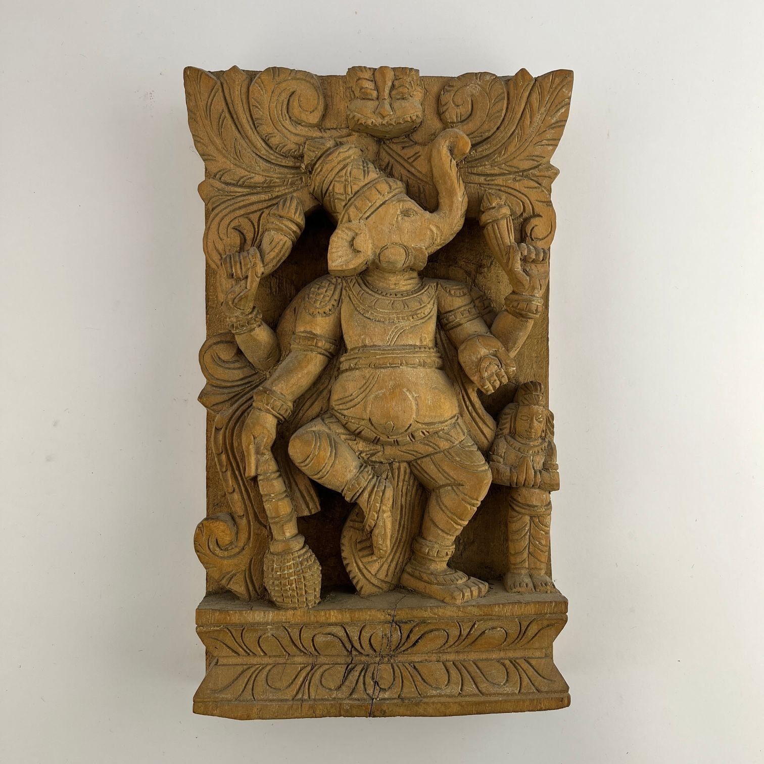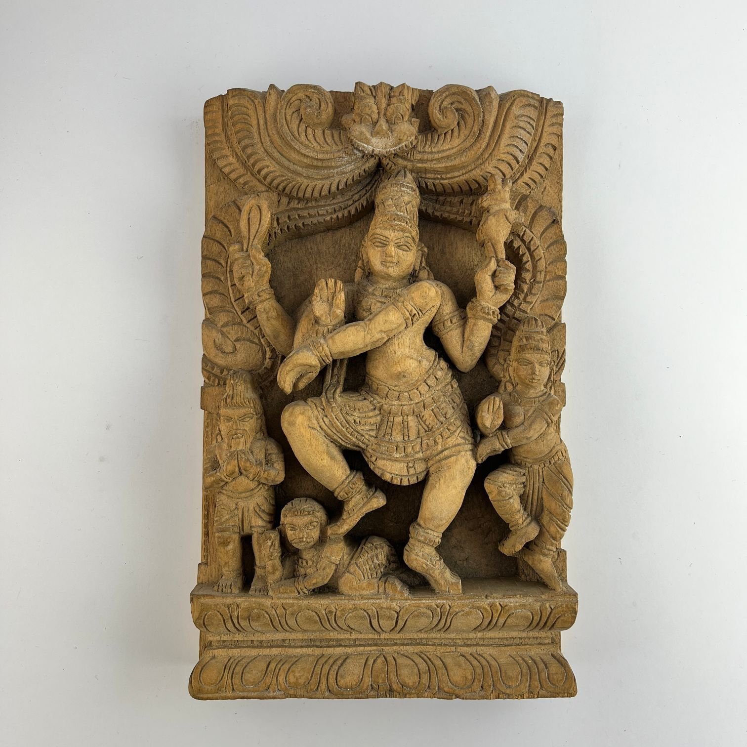 Par de placas indias en madera tallada «deidades hindúes». 31.5 x 20 cm.