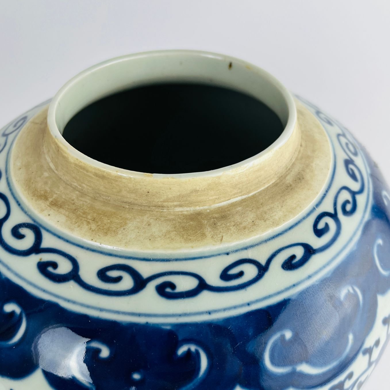 Par de potiches chinos en porcelana azul y blanca decorada «flores». 22 x 20 cm.