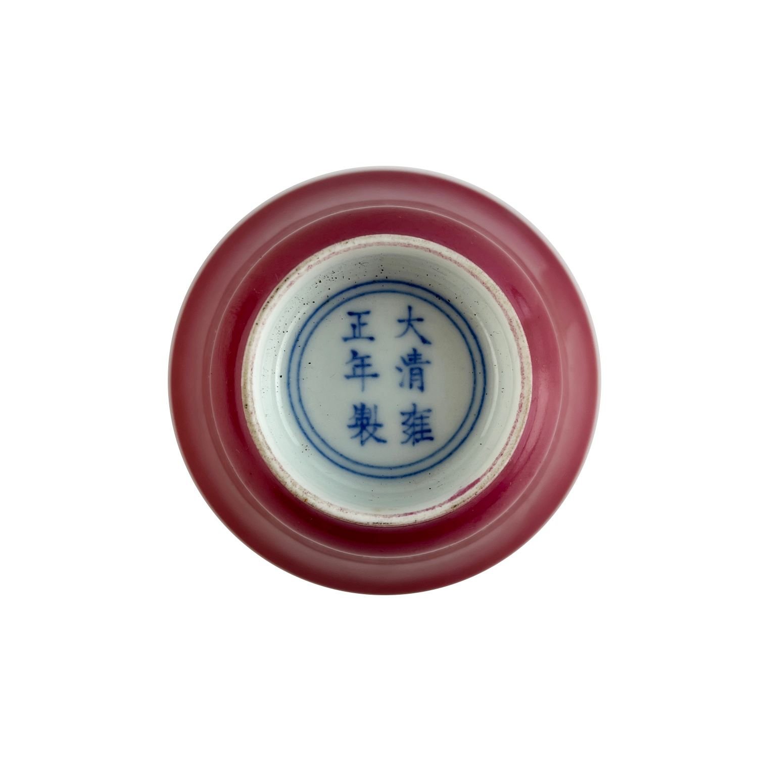Conjunto de par de tazas de té chinas y par de pequeños bowls en porcelana familia rosa. Bases con doble círculo y símbolos del emperador Yongzheng. 6 x 9 cm. 2.5 x 8 cm.