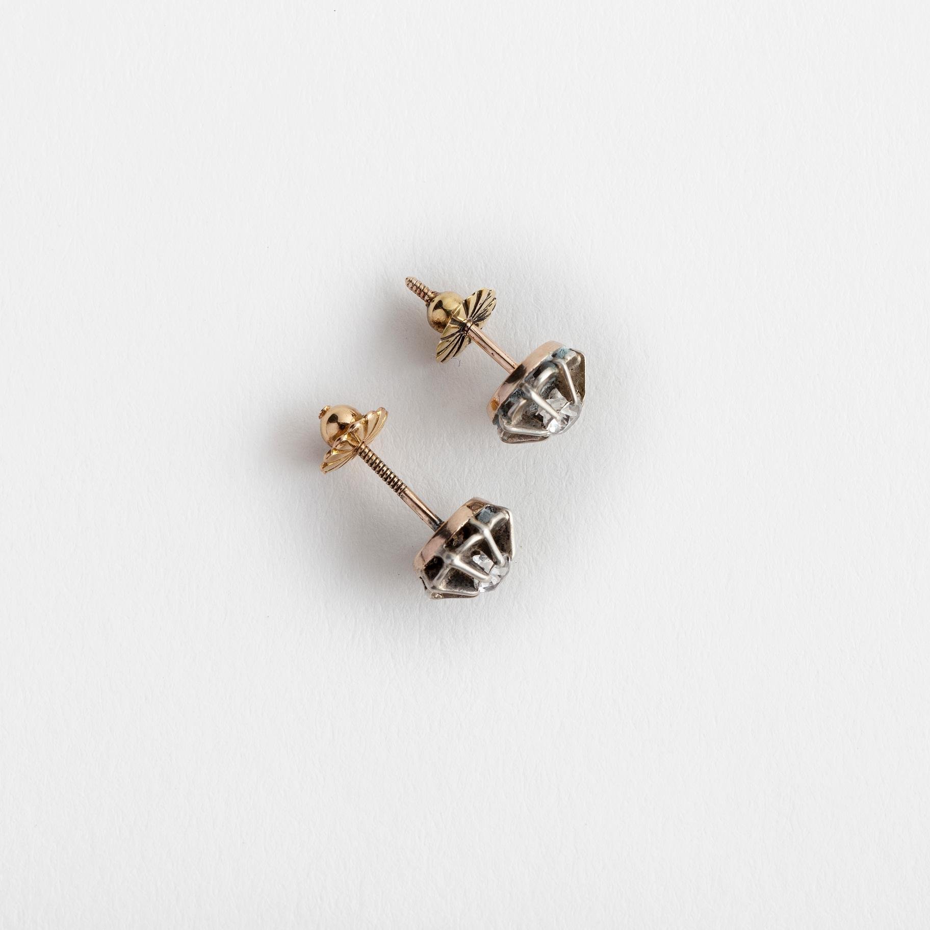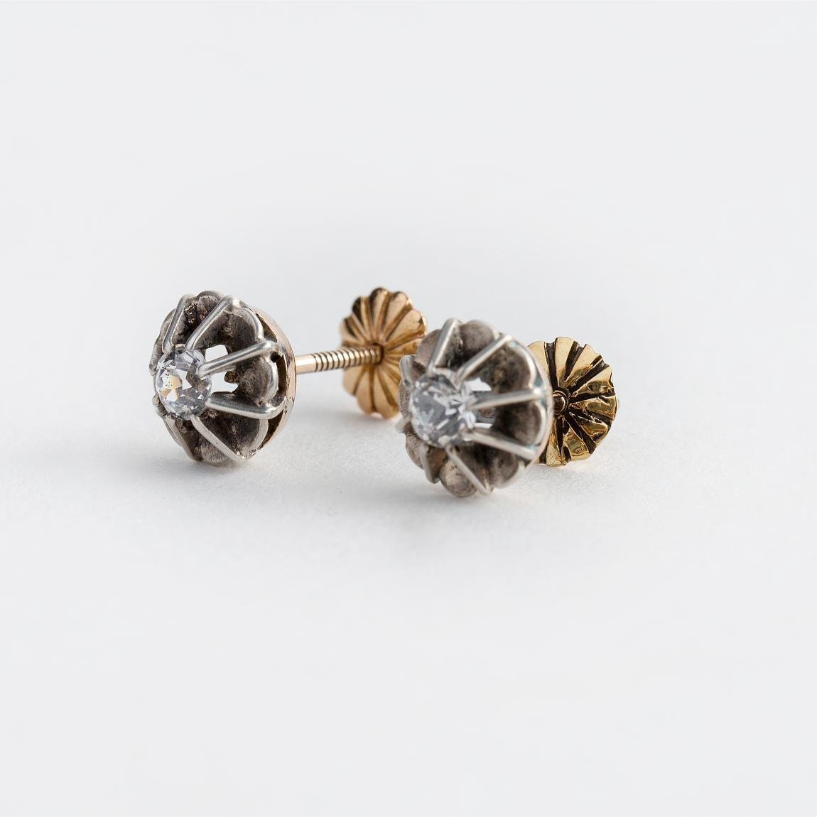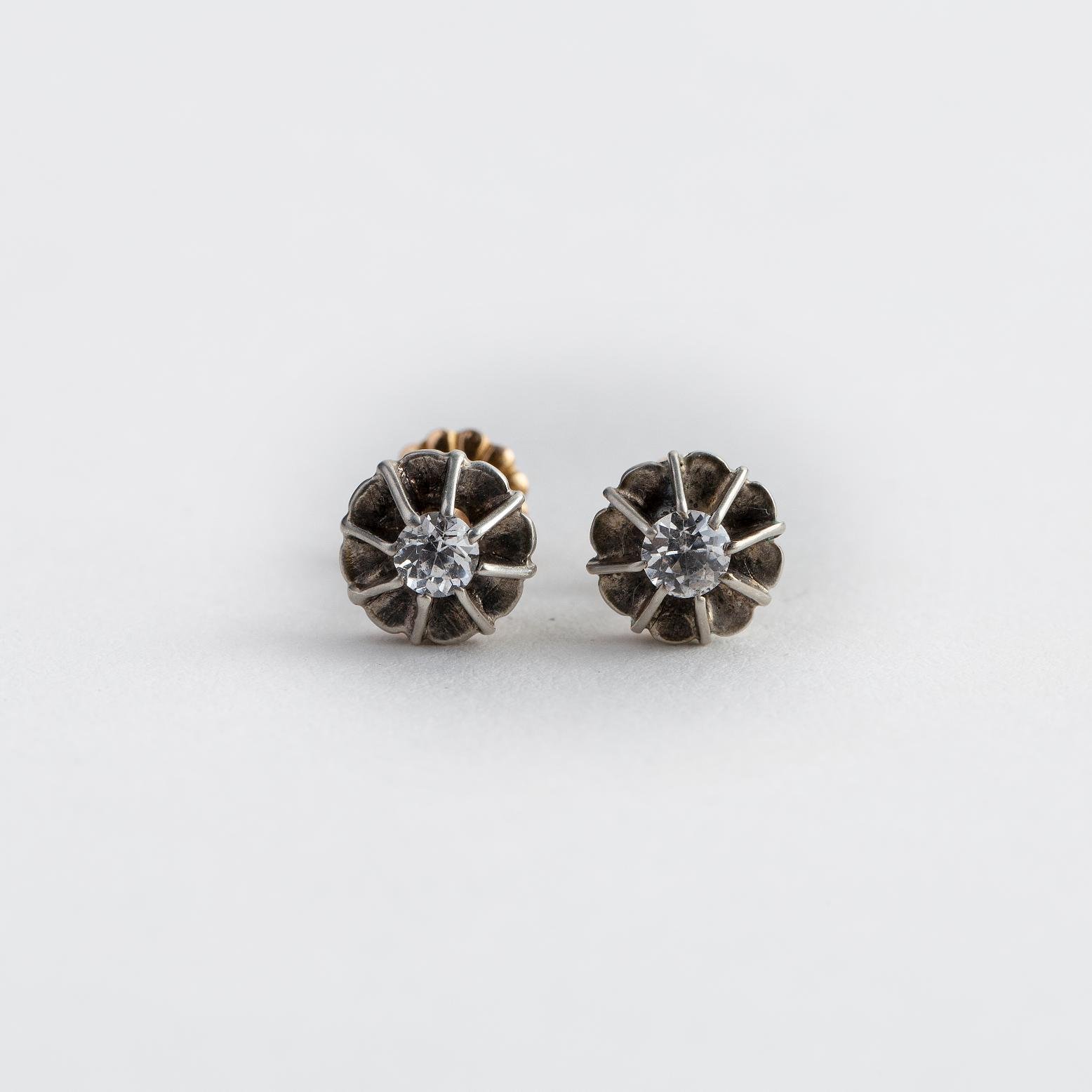 Par de tornillos en oro 18 K blanco y amarillo esculturados en forma de flor, con zirconias.