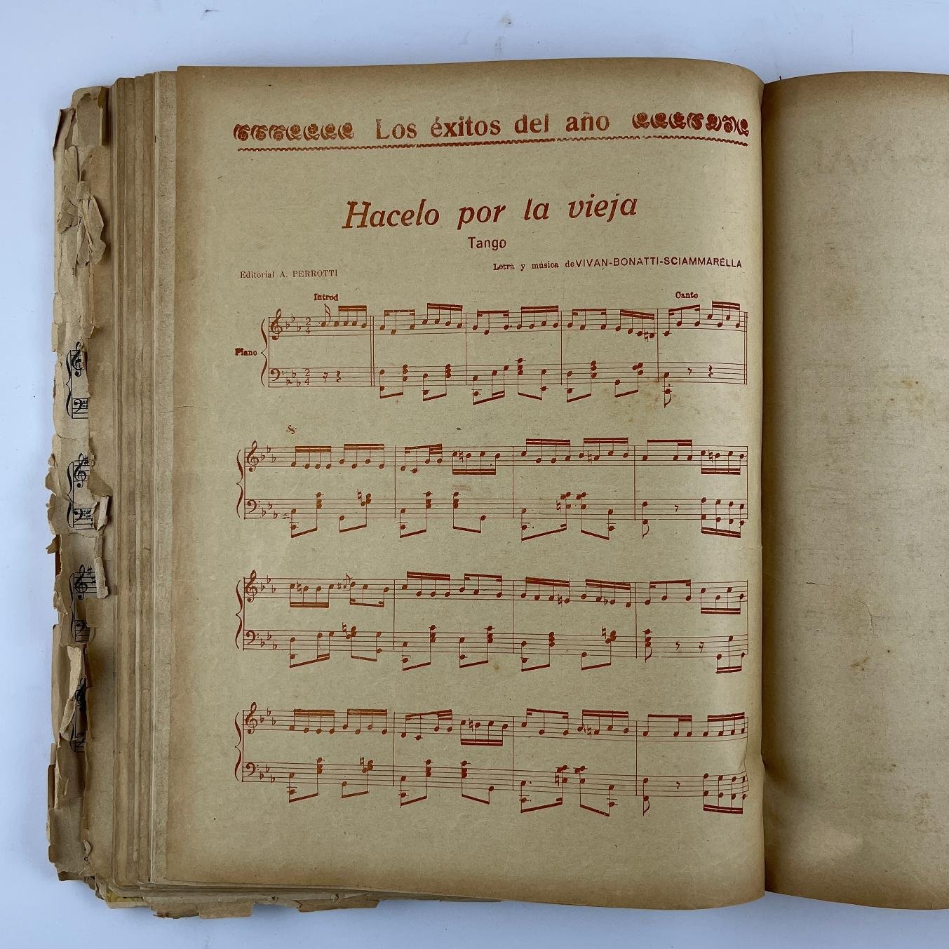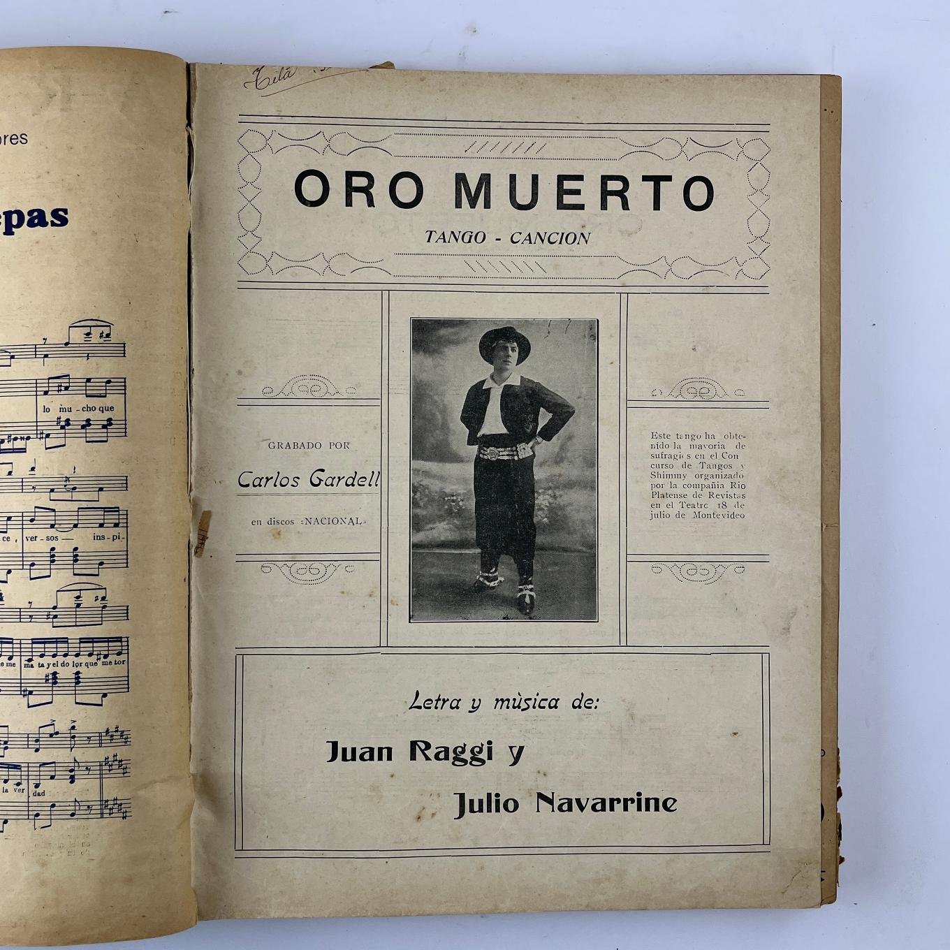 Conjunto de más de cien partituras musicales de época, incluyendo música para tango, milonga, pasodoble, vals y fox-trot. Encuadernados en un tomo.