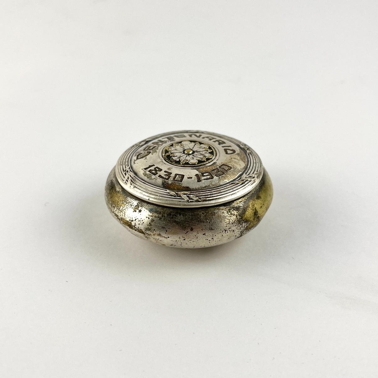 Pastillero en bronce plateado, conmemorativo del centenario de la constitución uruguaya de 1930.