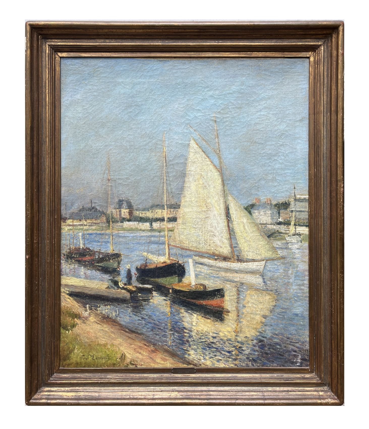 PAUL LECOMTE (Escuela francesa, 1842-1920) Veleros en Argenteuil Óleo sobre tela Firmado abajo a la izquierda 87 x 72 cm