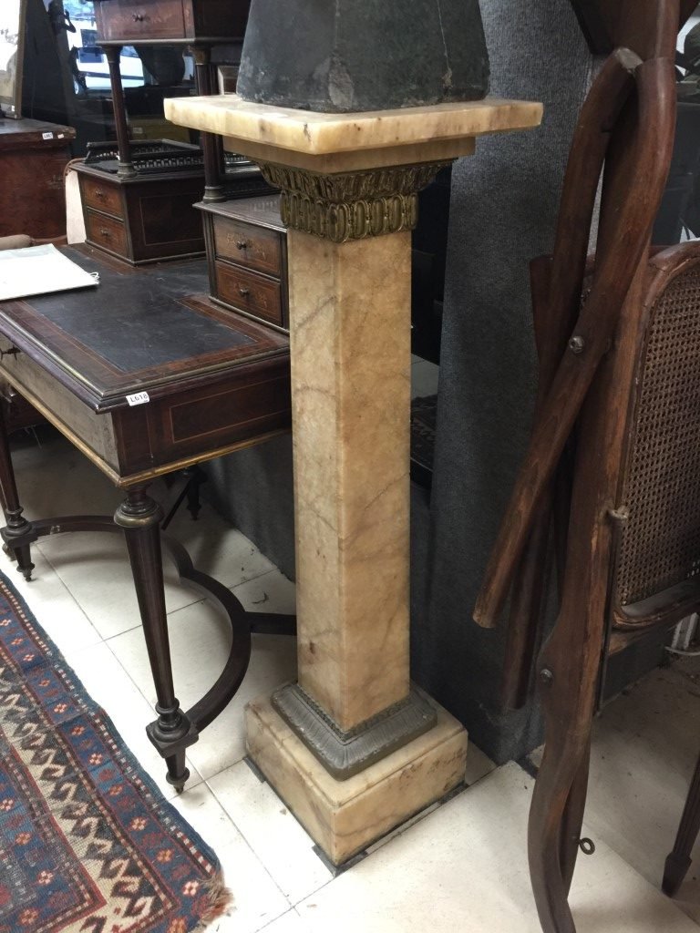 Pedestal en alabastro con monturas en bronce cincelado. 106 x 30 cm.