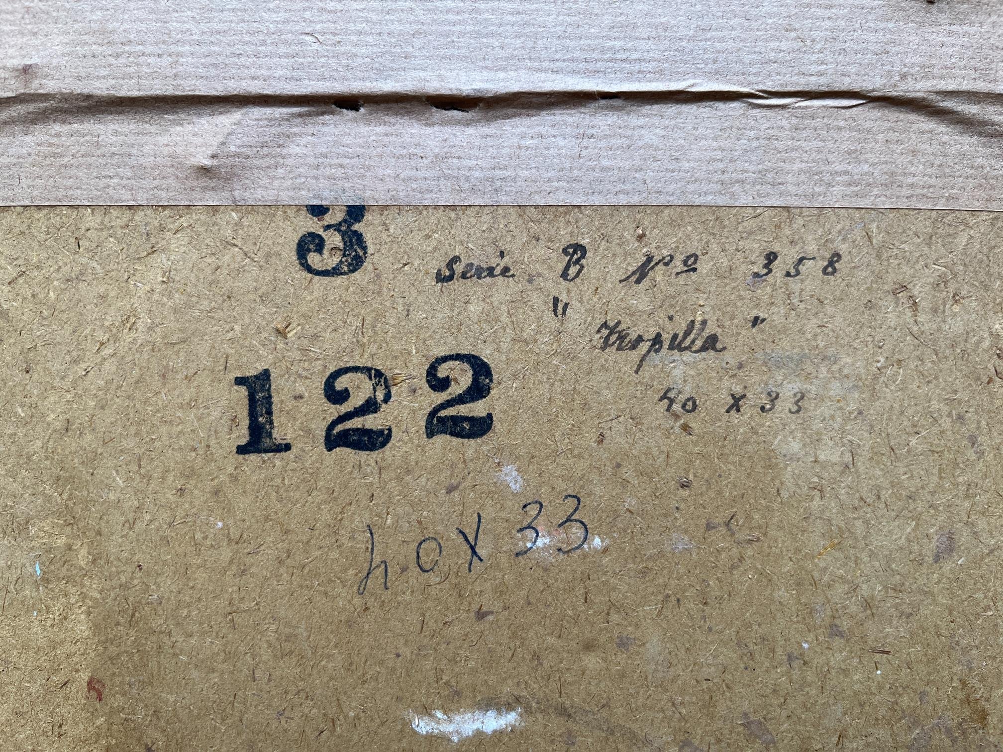 Al dorso titulado, medido e inventariado por el artista, con sello de la colección Regidor y dedicatoria a bolígrafo por María Elena Figari de Regidor, con fecha 1980