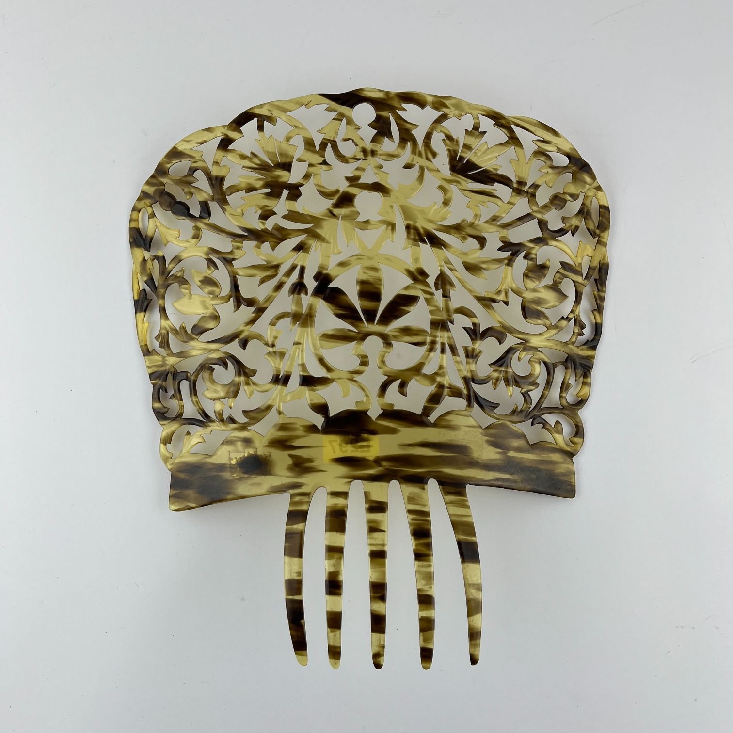 Peinetón en celuloide calado y cincelado «hojas». 26.5 x 24.5 cm.