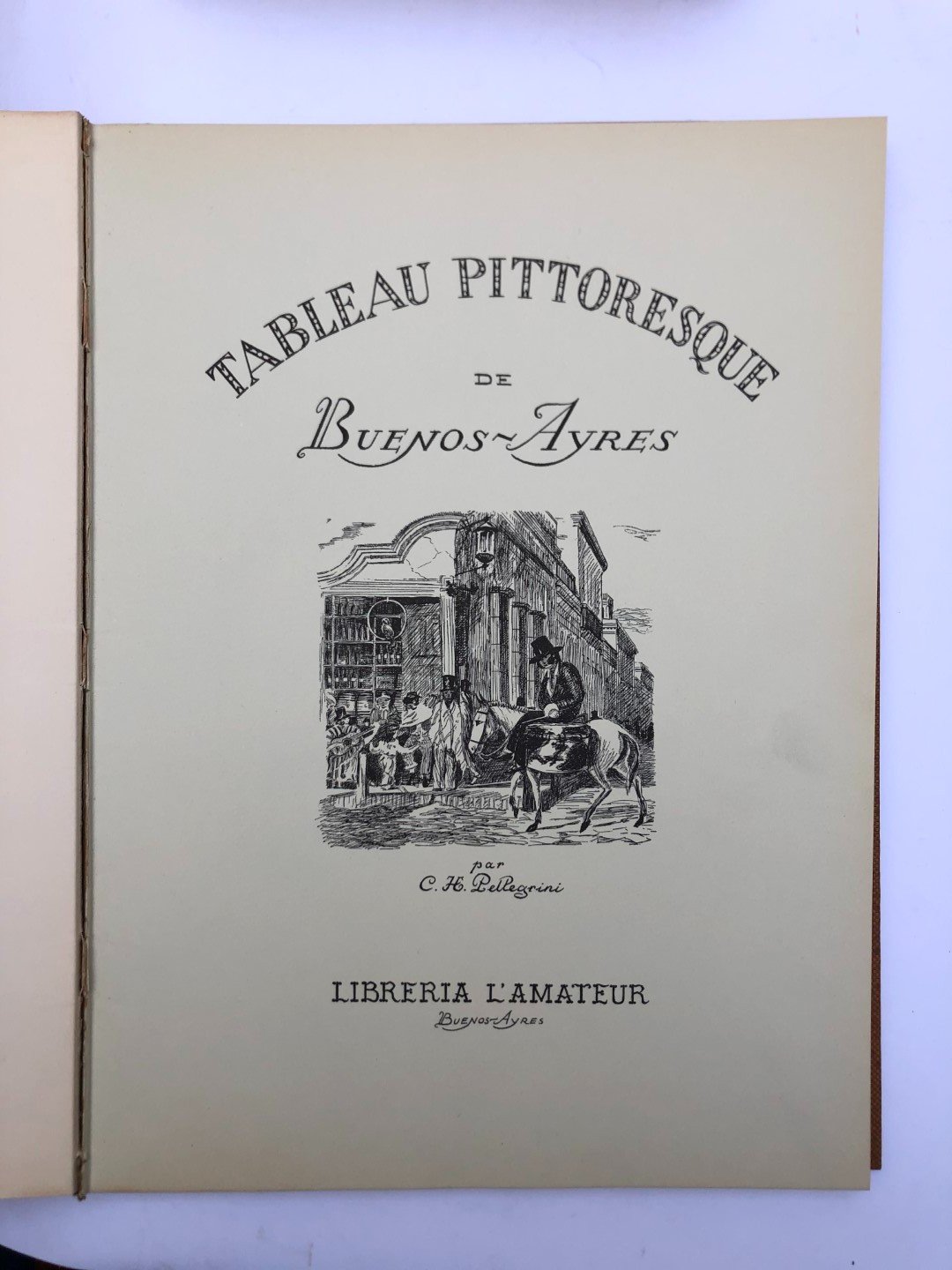 PELLEGRINI, C. H.: Tableu Pittoresque de Buenos Ayres. Buenos Aires, Liberia L’Amateur. 1831. Encuadernación con lomo de cuero. Ejemplar facsímil.