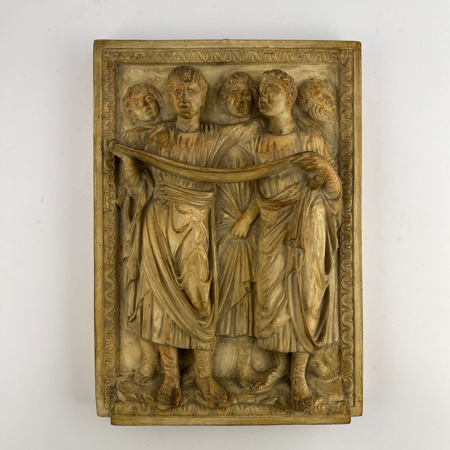 Placa italiana de Signa esculturada en bajorrelieve. «Romanos.» 31 x 22 cm.