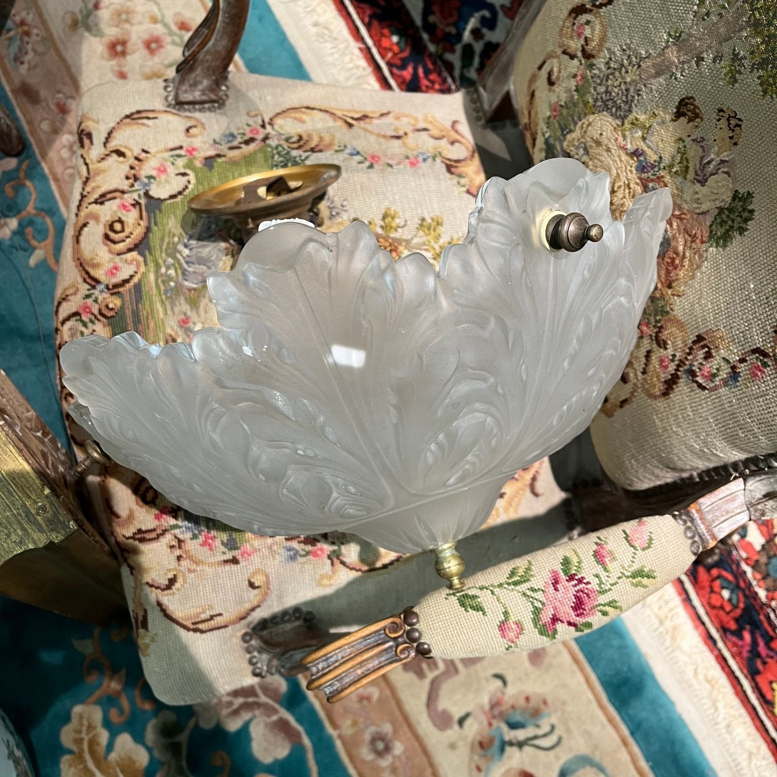 Plafond en vidrio prensado y esmerilado «hojas de acanto». 16 x 41 cm. Sin electrificar.