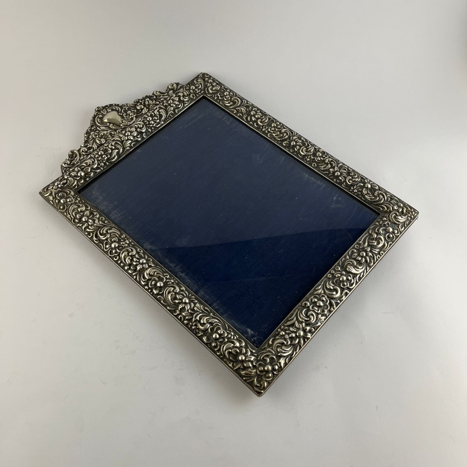 Portarretratos rectangular en plata cincelada «hojas y flores». 21 x 16 cm.