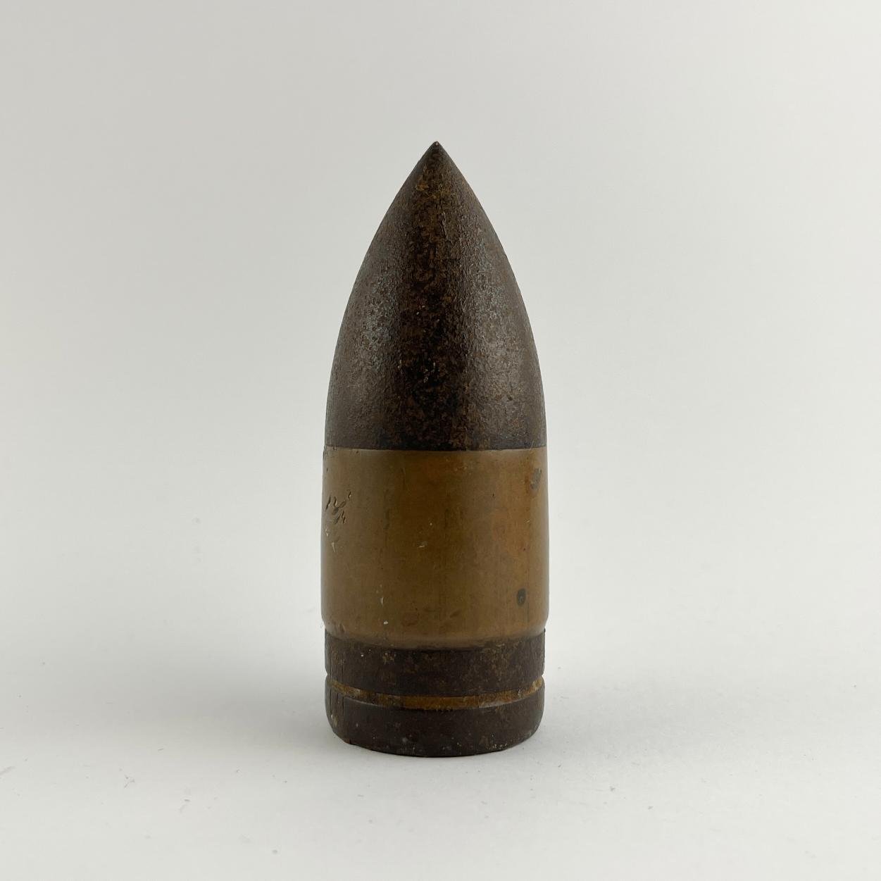 Proyectil de artillería francesa 37 mm Hotchkiss «Pom Pom», en hierro con banda de forzamiento en latón. WWI. Alto 96 mm.