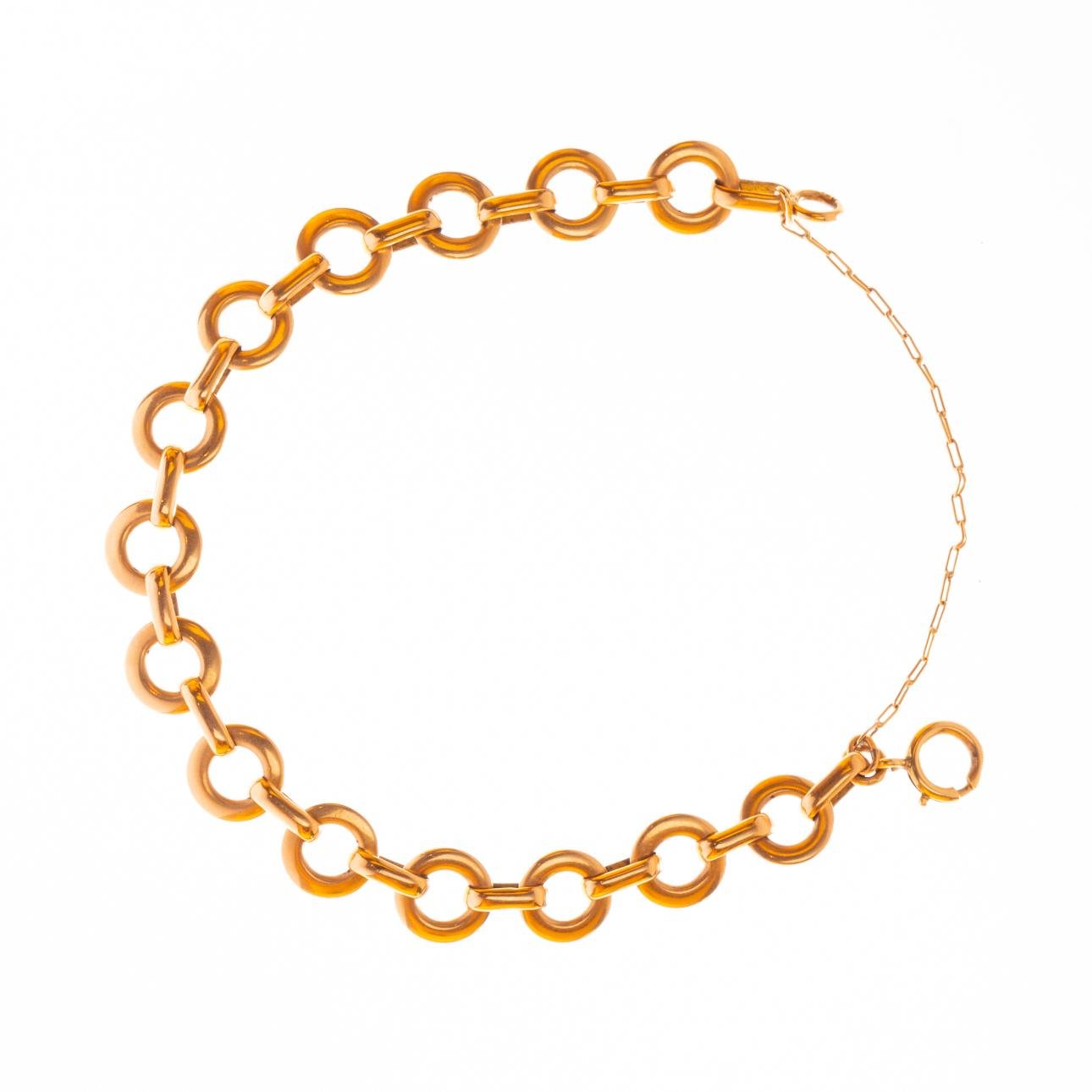 Pulsera en eslabones de oro 18 K amarillo. Ancho 10 mm. Largo abierto 195 mm. Peso bruto 15,8 gr.