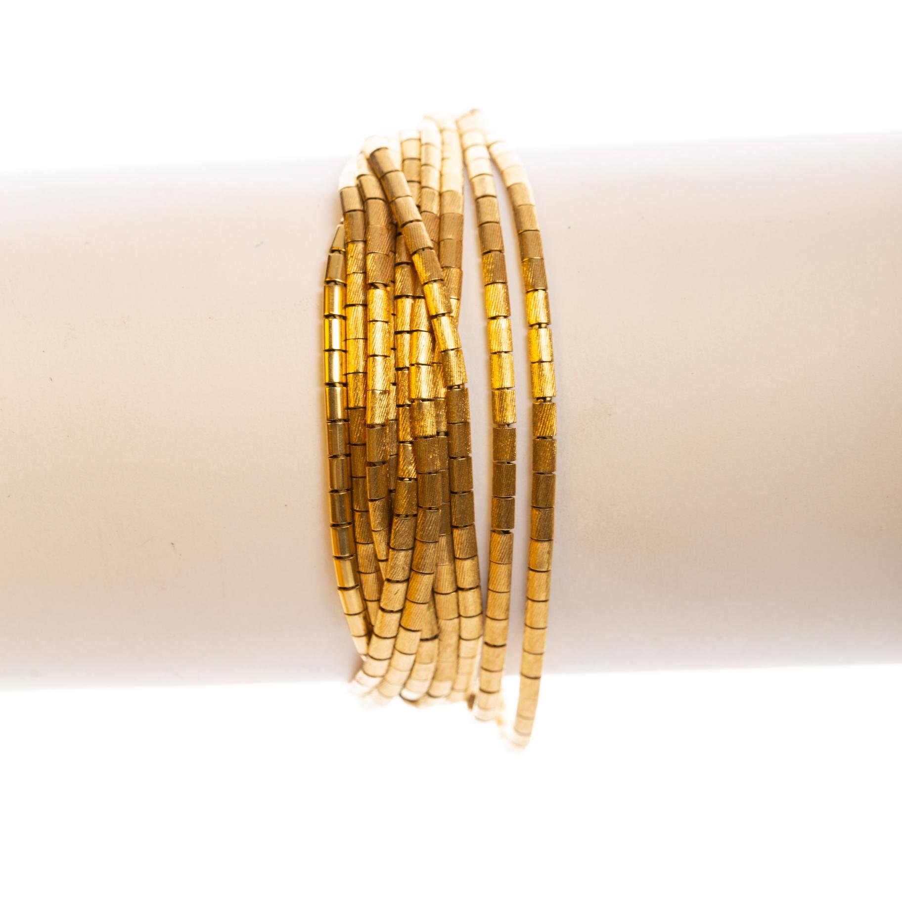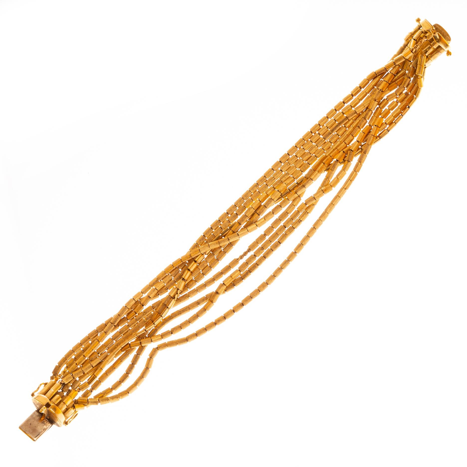 Pulsera en diez hilos de oro 18 K amarillo. Largo abierto 180 mm. Peso 55,2 gr.