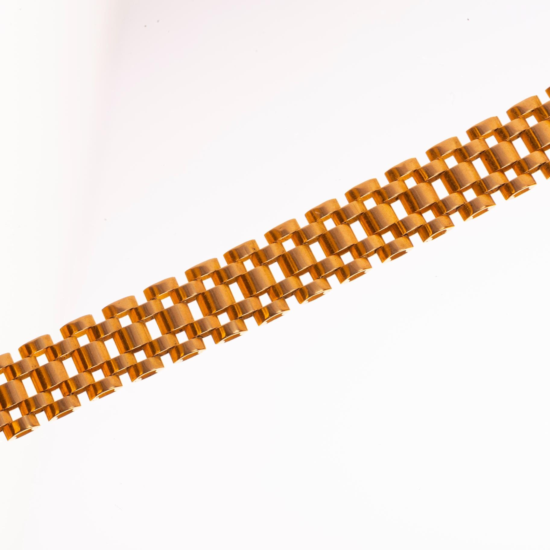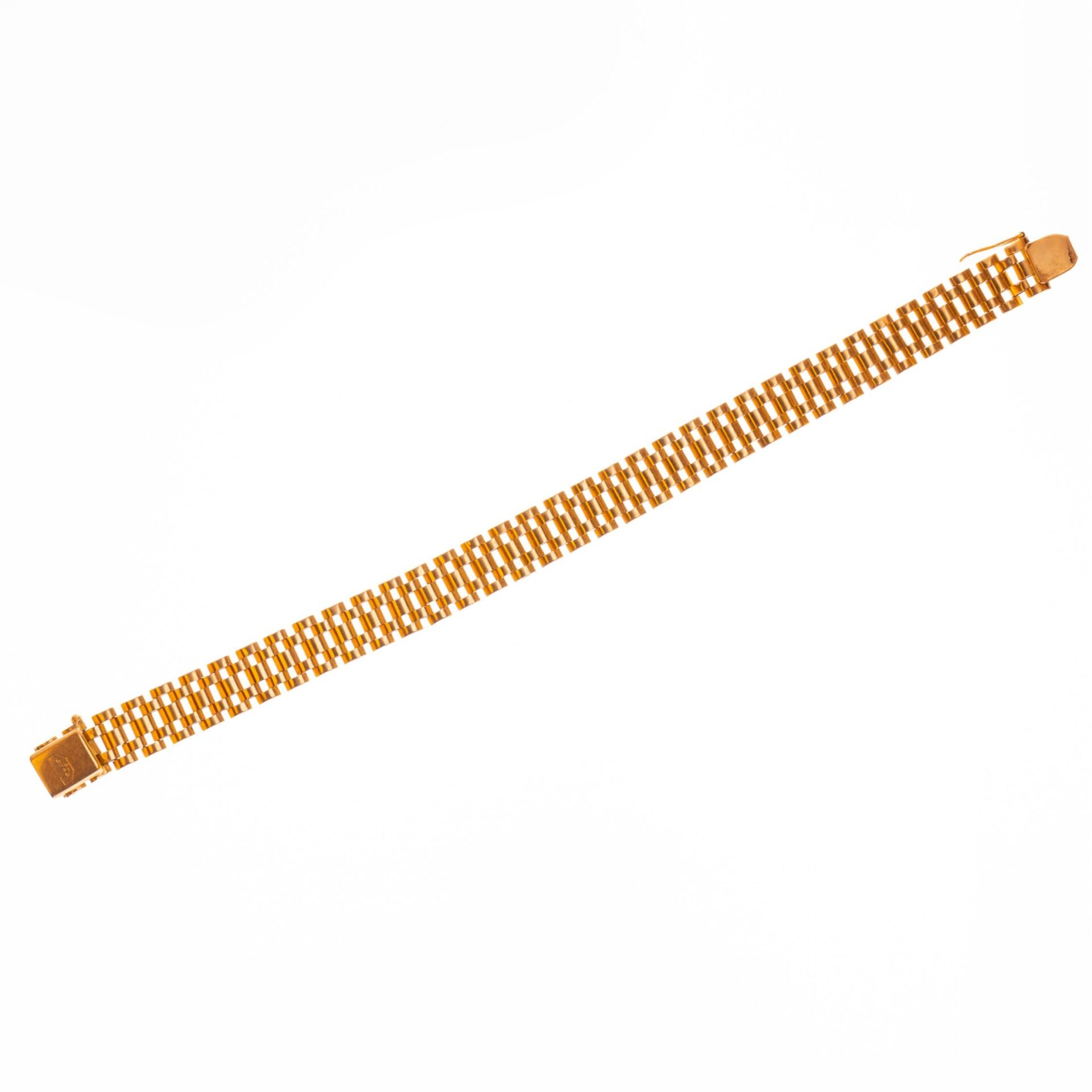 Pulsera en eslabones de oro 18 K amarillo. Ancho 10 mm. Largo abierto 195 mm. Peso bruto 15,8 gr.