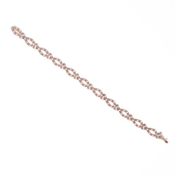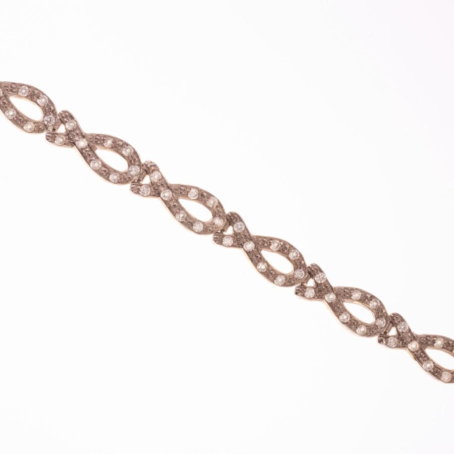 Pulsera en eslabones de oro 18 K blanco decorada con circonias. Ancho 7 mm. Largo 175 mm. Peso bruto 11,5 gr.