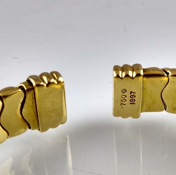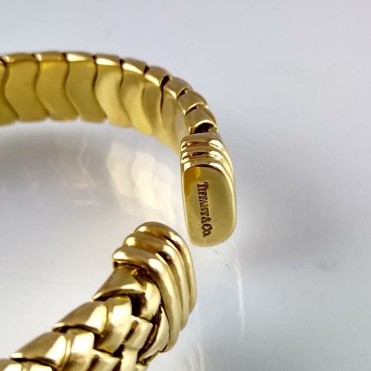 Pulsera Tiffany flexible en oro 18 K amarillo trenzado. Fechada «1997». Ancho 10 mm. Peso 41 gr.